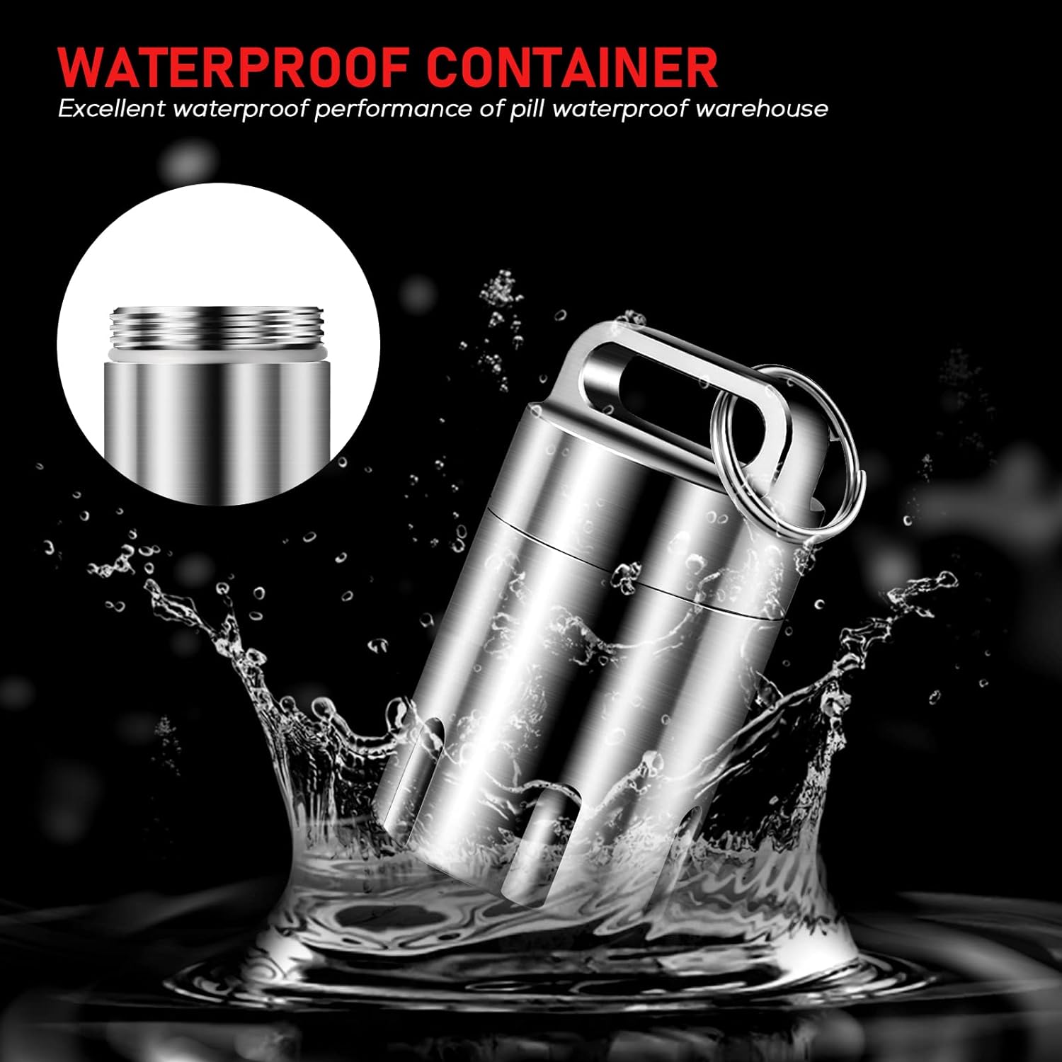 TISUR Titanium Small Pill Holder Keychain, Portable Pill Case Waterproof Pocket Pill Box Container Carrier to Hold Pills, Vitamins, Fish Oil, Supplements