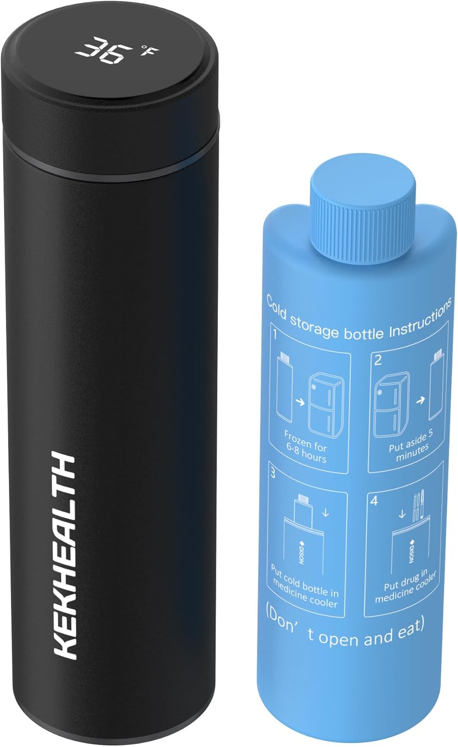 - REAL-TIME TEMPERATURE MONITORING: Stay informed with a bright digital display integrated into the bottle cap, simplifies temperature monitoring and showing you the exact temperature of the insulin at all times, allowing you to always know the temperature of the insulin storage without opening the cooler for enjoy medicine travel