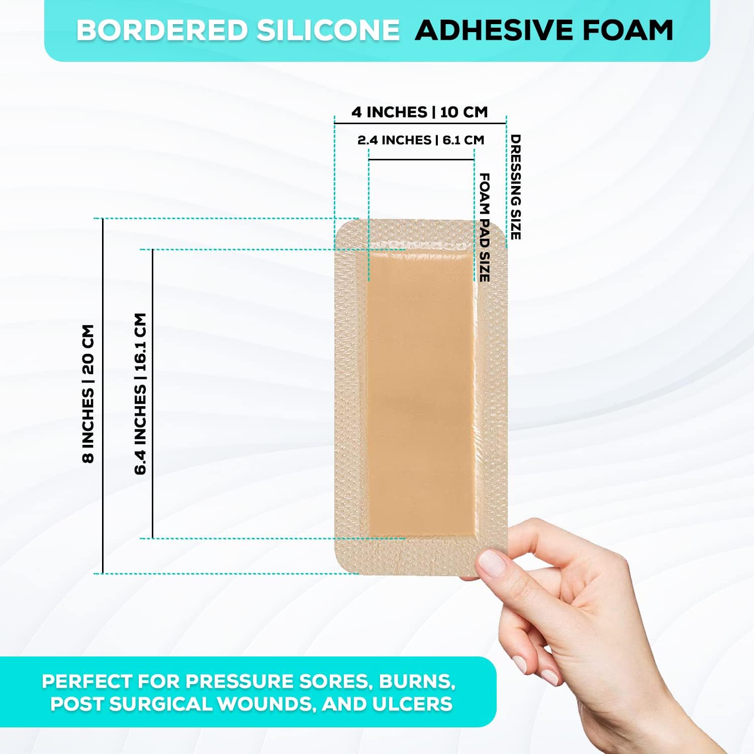 MedVanceTM Silicone - Bordered Silicone Adhesive Foam Dressing Size 4”X8” (2.4"x 6.4" Pad) 10 Pack