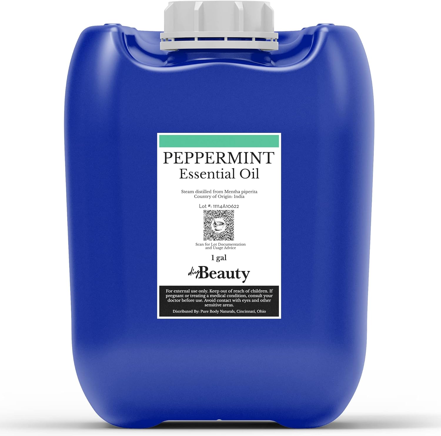 Bulk Peppermint Essential Oil - Large 1 Gallon Jerrican - 100% Pure and Undiluted Therapeutic Grade Mentha Piperita - Concentrated Extract