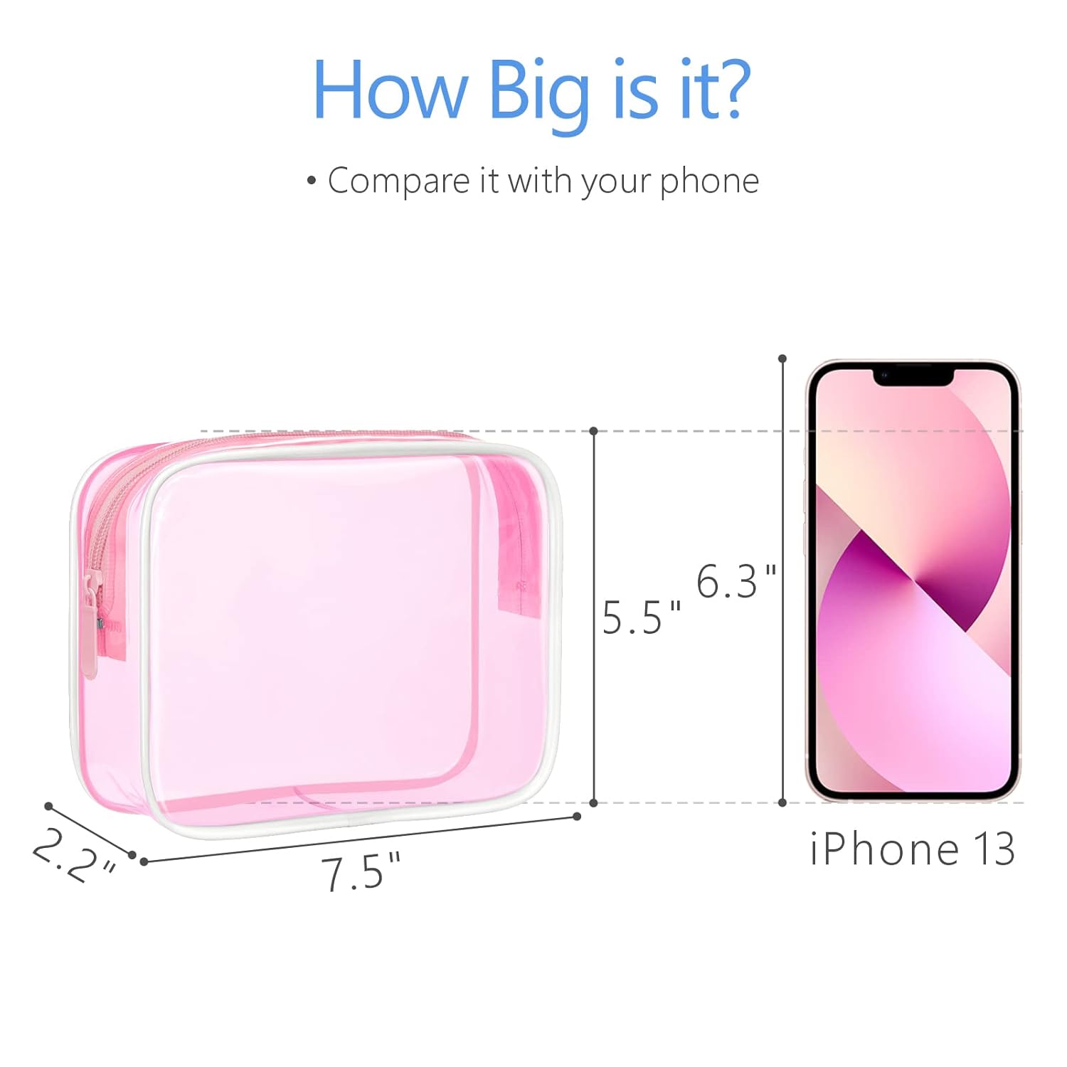 - 【Crystal Clear & Durable】This clear makeup bag is made with thick 0.5mm PVC so TSA agents can scan contents instantly; Reinforced stitching keeps your shampoo bottles safe even when your luggage gets tossed