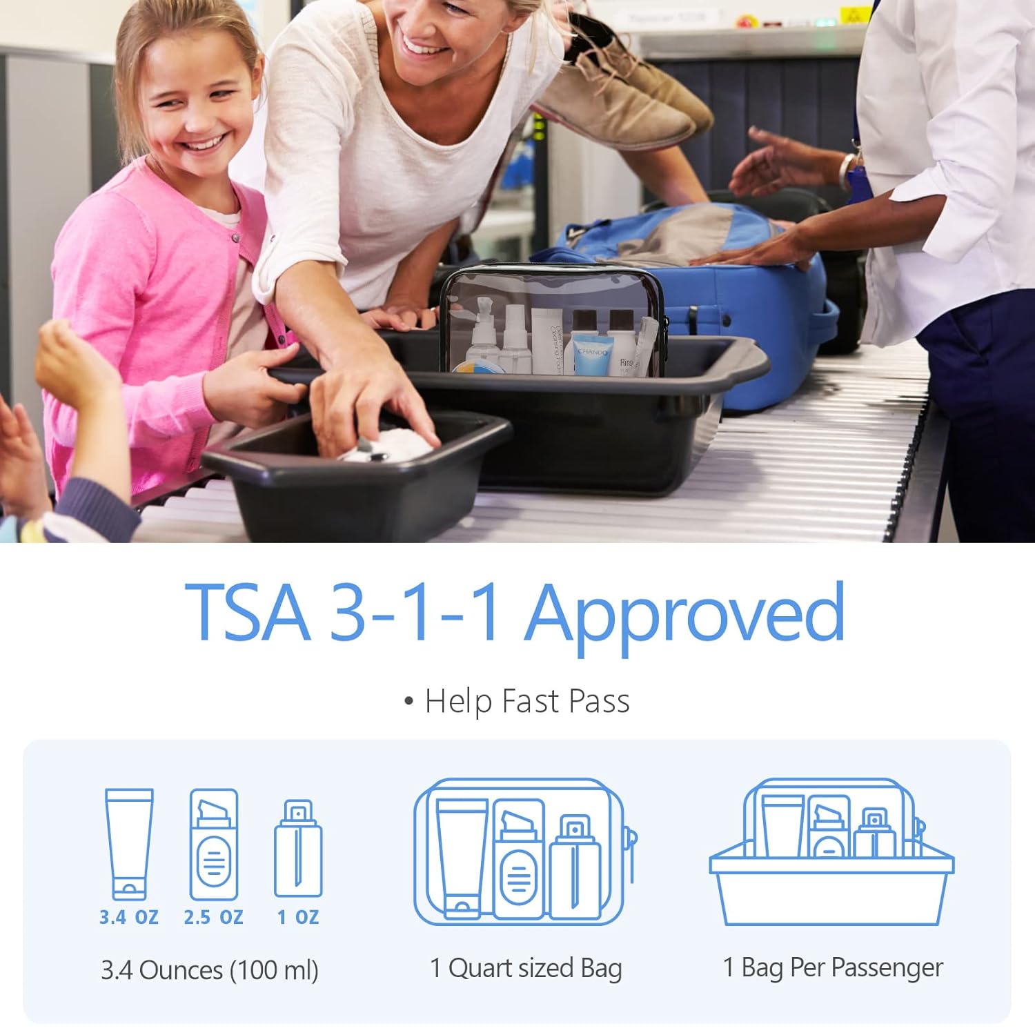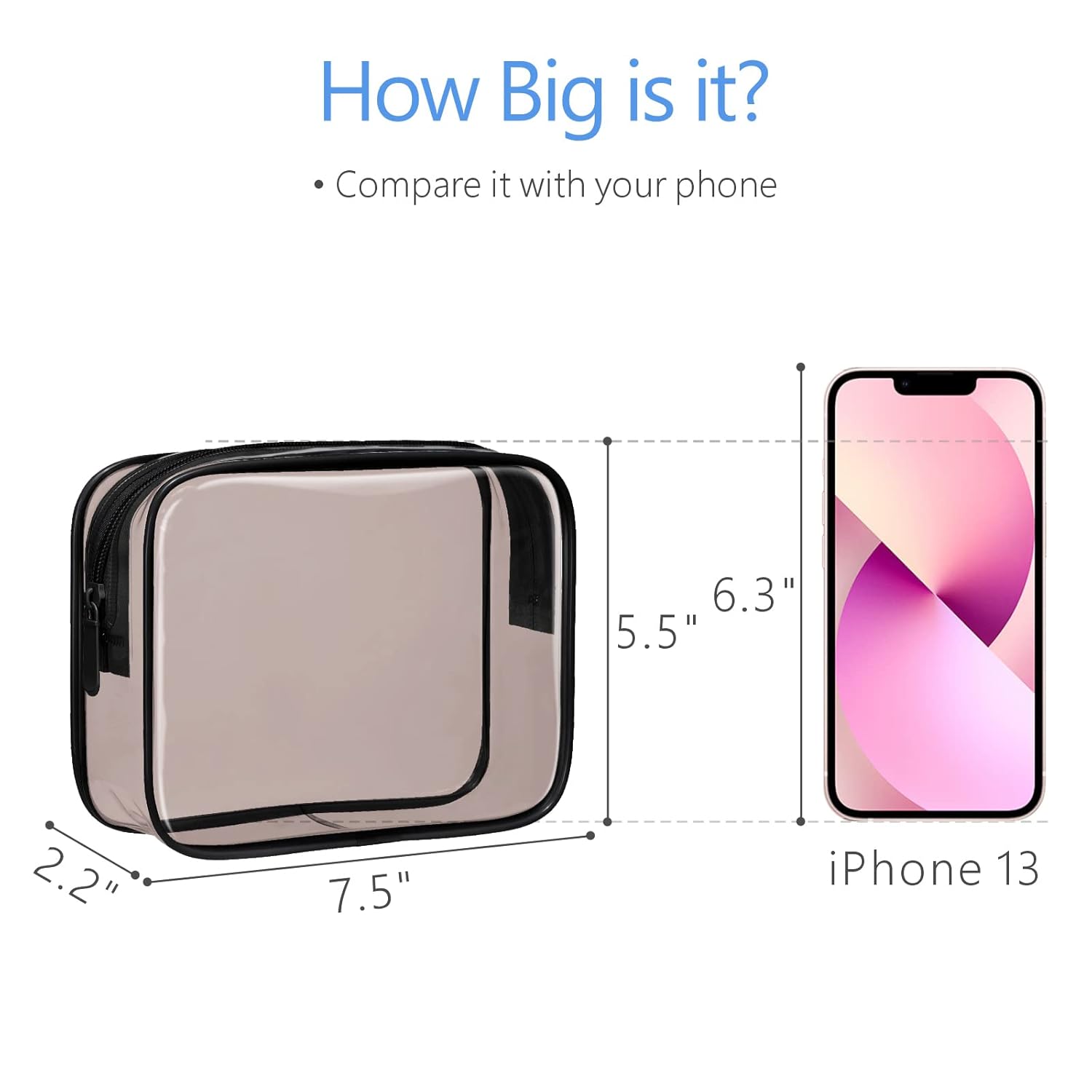 - TSA Approved: The 7.5 x 5.5 x 2.2 inch clear travel toiletry bag strictly follows TSA 3-1-1 liquids rule for carry-on bag of all airlines, so you can easily and quickly pass through security screening with it in the airport
