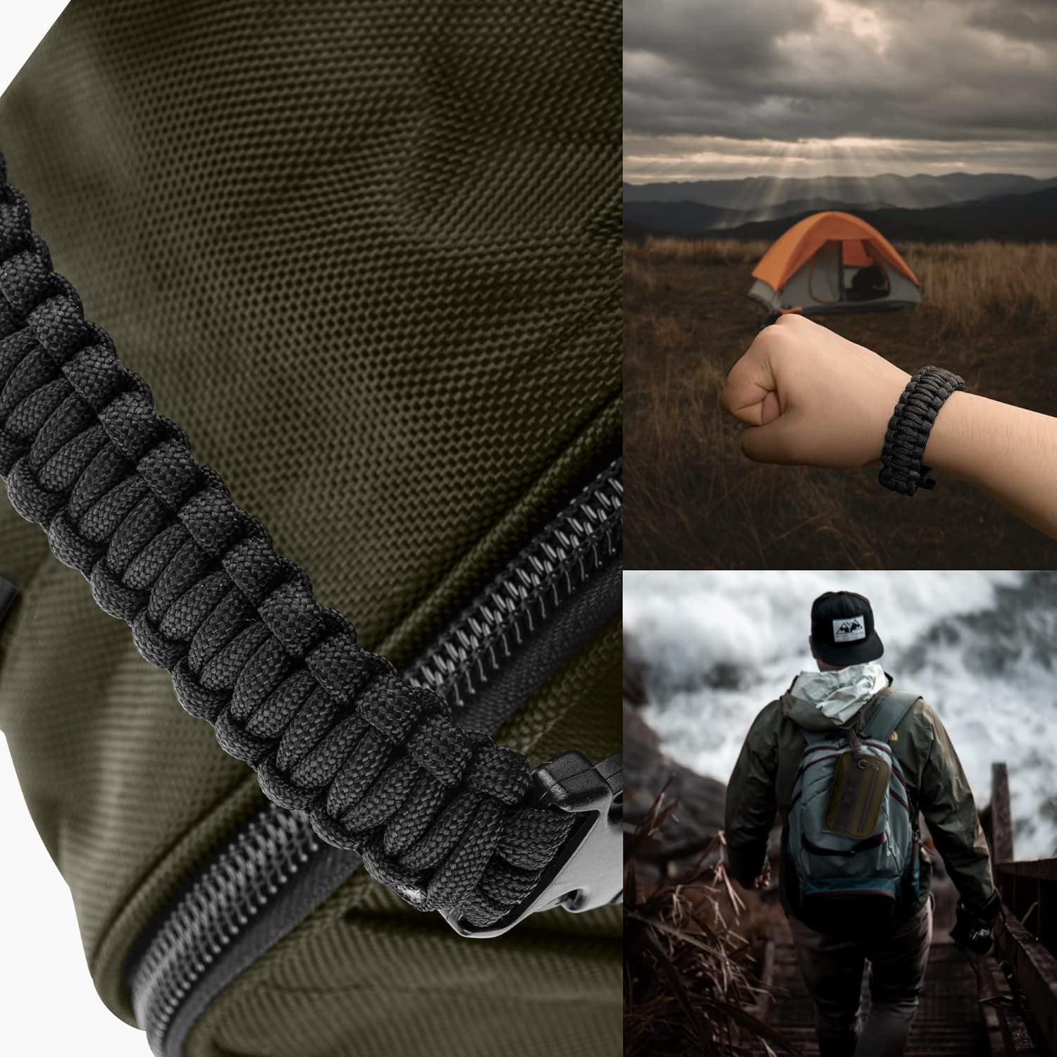 - DESIGNED FOR ANY OCCASION – Tactical inspired design that not only serves you in the hotel room but also in the unknown wilderness. The side molle webbing allows you to add tools & gadgets for quick access, or even pouch for additional carry capacity. The handle is made from detachable 550 paracord and whistles for emergencies because anything can happen. Heck! We also give a FREE Tactical Carabiner.