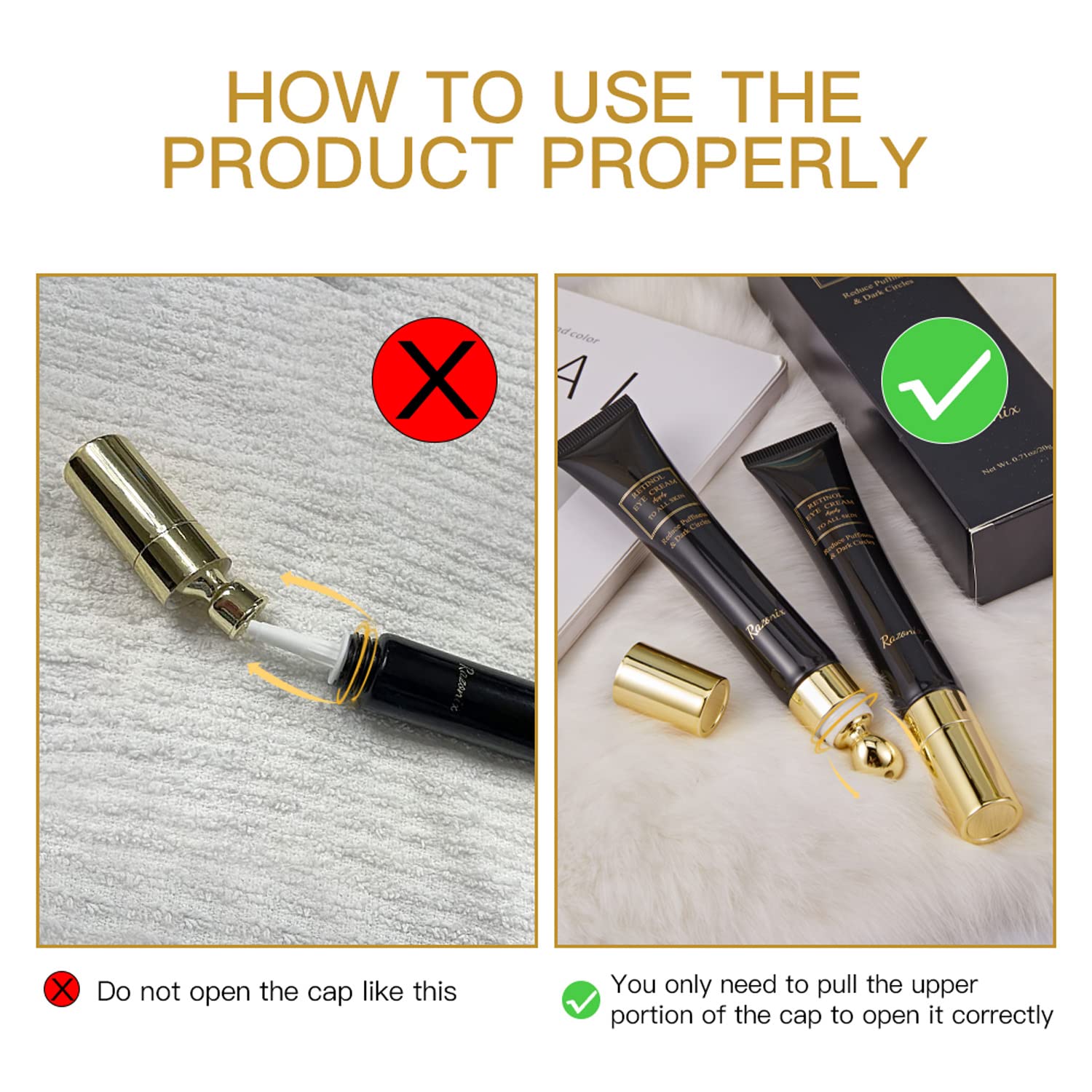 - Dark Circles Under Eye Treatment: Formulated with retinol to reduce dark circles and fine lines under the eyes. Effectively diminishing puffiness and baggy eyes.