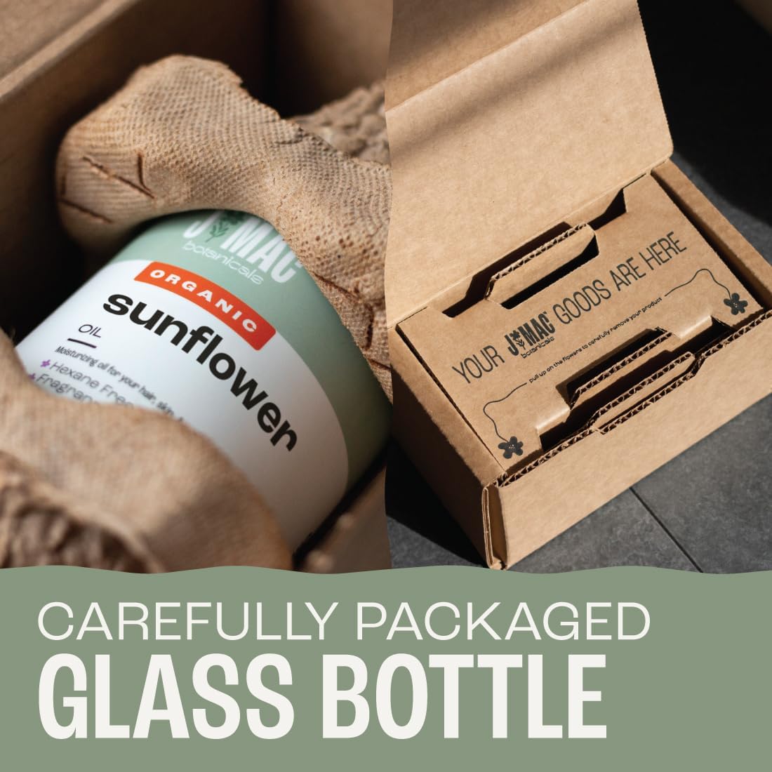J MAC BOTANICALS Organic Sunflower Oil (16 oz Glass Bottle) USDA Organic Certified 100% Pure Carrier Oil, Moisturizing & Nourishing for Skin, Face, Hair