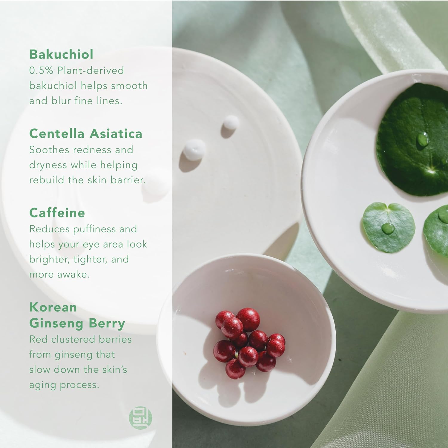 Meebak Korean Eye Cream for Wrinkles, Anti Aging, Dark Circles and Puffiness with Bakuchiol, CICA, Caffeine, Ginseng Berry 1.01 fl oz