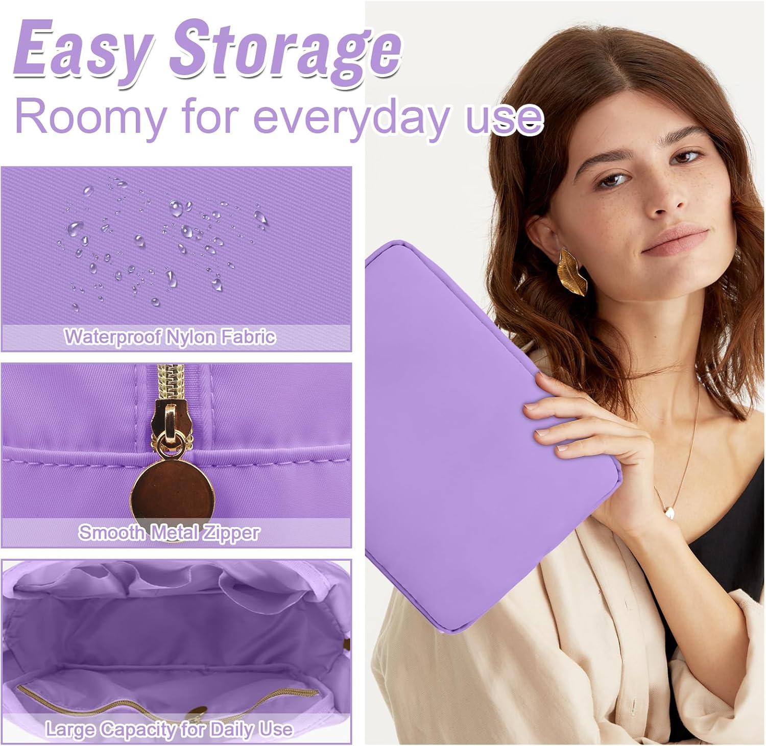 - ❤【Multiple Sizes & Colors】Large, Small, Mini, or Slim, we have it all! Cosmetic bags are available in many colors: Hot Pink, Beige, Black, Blue, Pink and other colors for you to choose. Nylon makeup bag for purse can be used for travel, outdoors and organization, it can be used as a purse bag, travel pouch, clutch, makeup organizer and more.