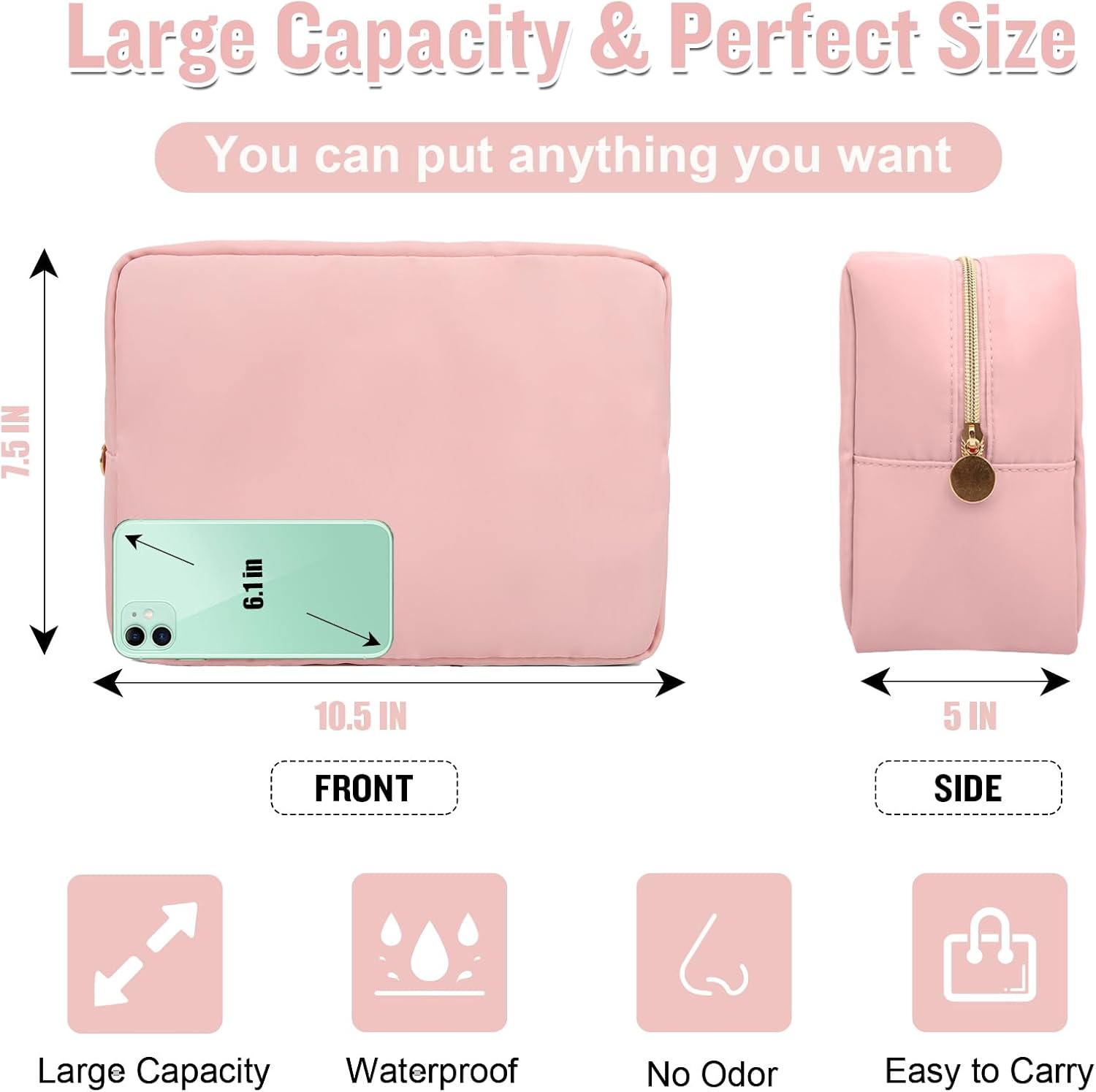 - ❤【Multiple Sizes & Colors】Large, Small, Mini, or Slim, we have it all! Cosmetic bags are available in many colors: Hot Pink, Beige, Black, Blue, Pink and other colors for you to choose. Nylon makeup bag for purse can be used for travel, outdoors and organization, it can be used as a purse bag, travel pouch, clutch, makeup organizer and more.