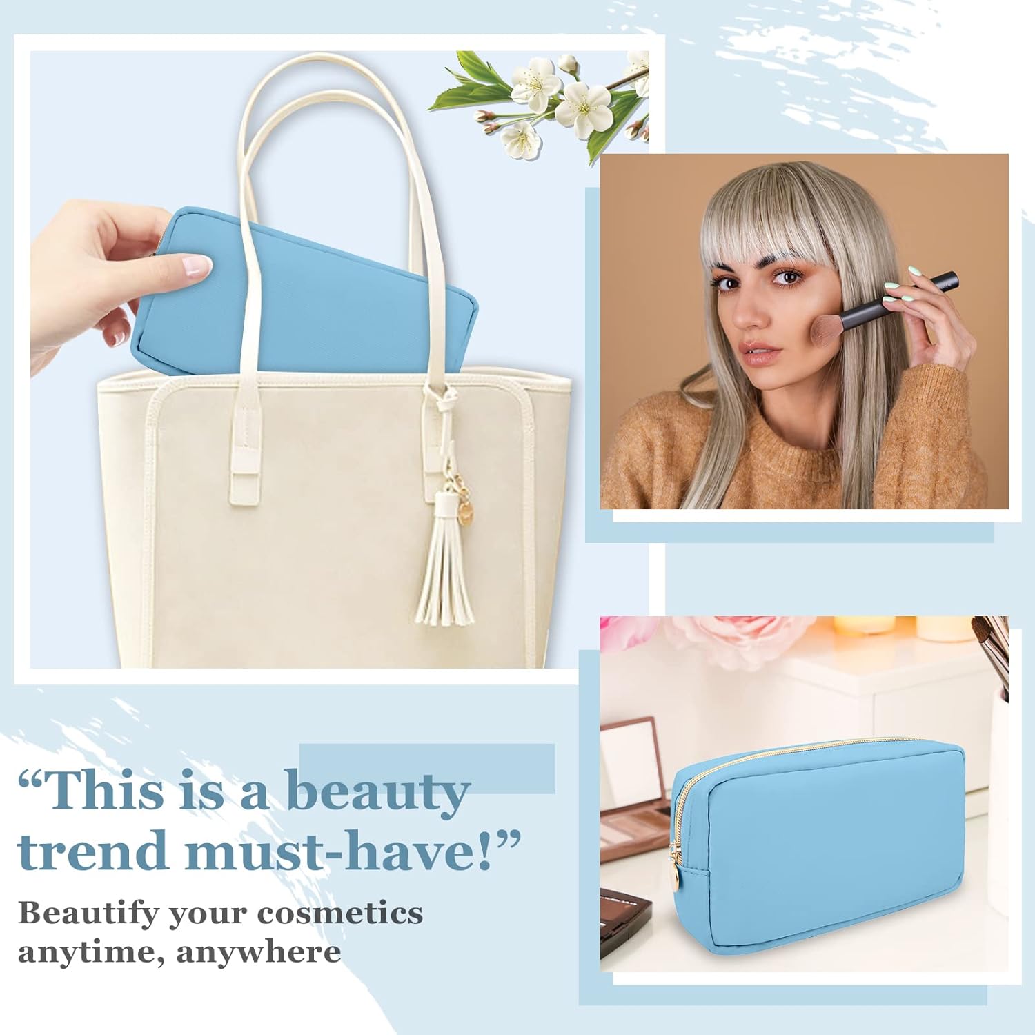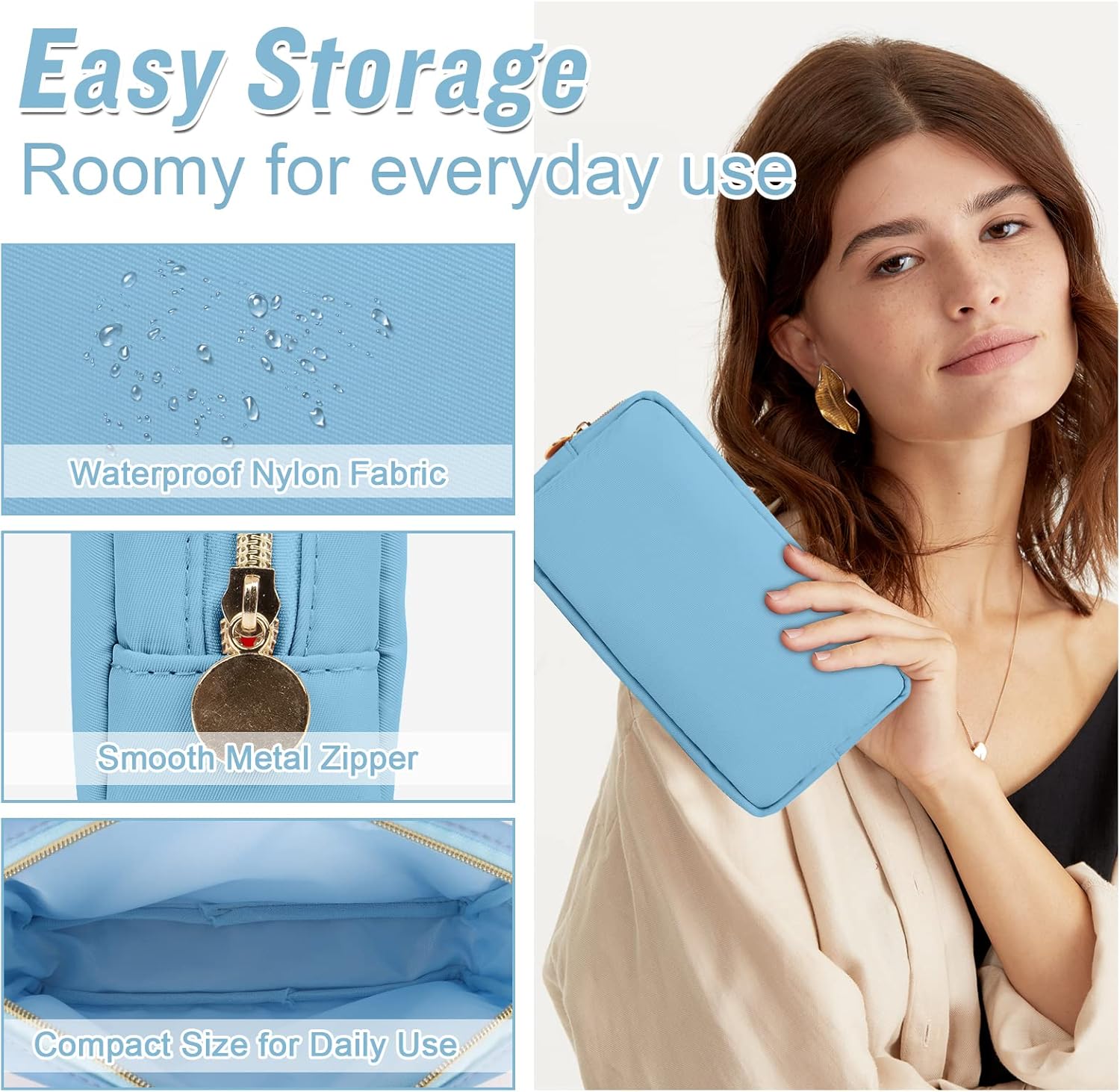 - ❤【Multiple Sizes & Colors】Large, Small, Mini, or Slim, we have it all! Cosmetic bags are available in many colors: Hot Pink, Beige, Black, Blue, Pink and other colors for you to choose. Nylon makeup bag for purse can be used for travel, outdoors and organization, it can be used as a coin pouch, purse bag, travel pouch, clutch, makeup organizer and more.
