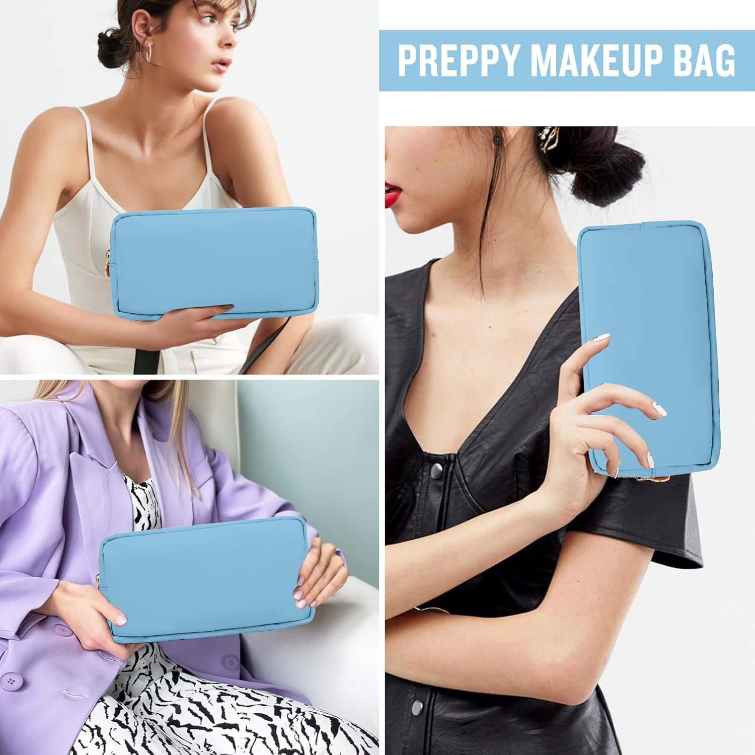 - ❤【DIY Your Bag & Patches Friendly】Small compact makeup bag material allows you to easily attach your favorite patches and fits all travel toiletries. You can put any chenille letters or patterns you want on it, "STUFF" SNACK "BEACH" and so on to design your unique travel makeup bag. Make your preppy makeup bag very interesting and vivid!