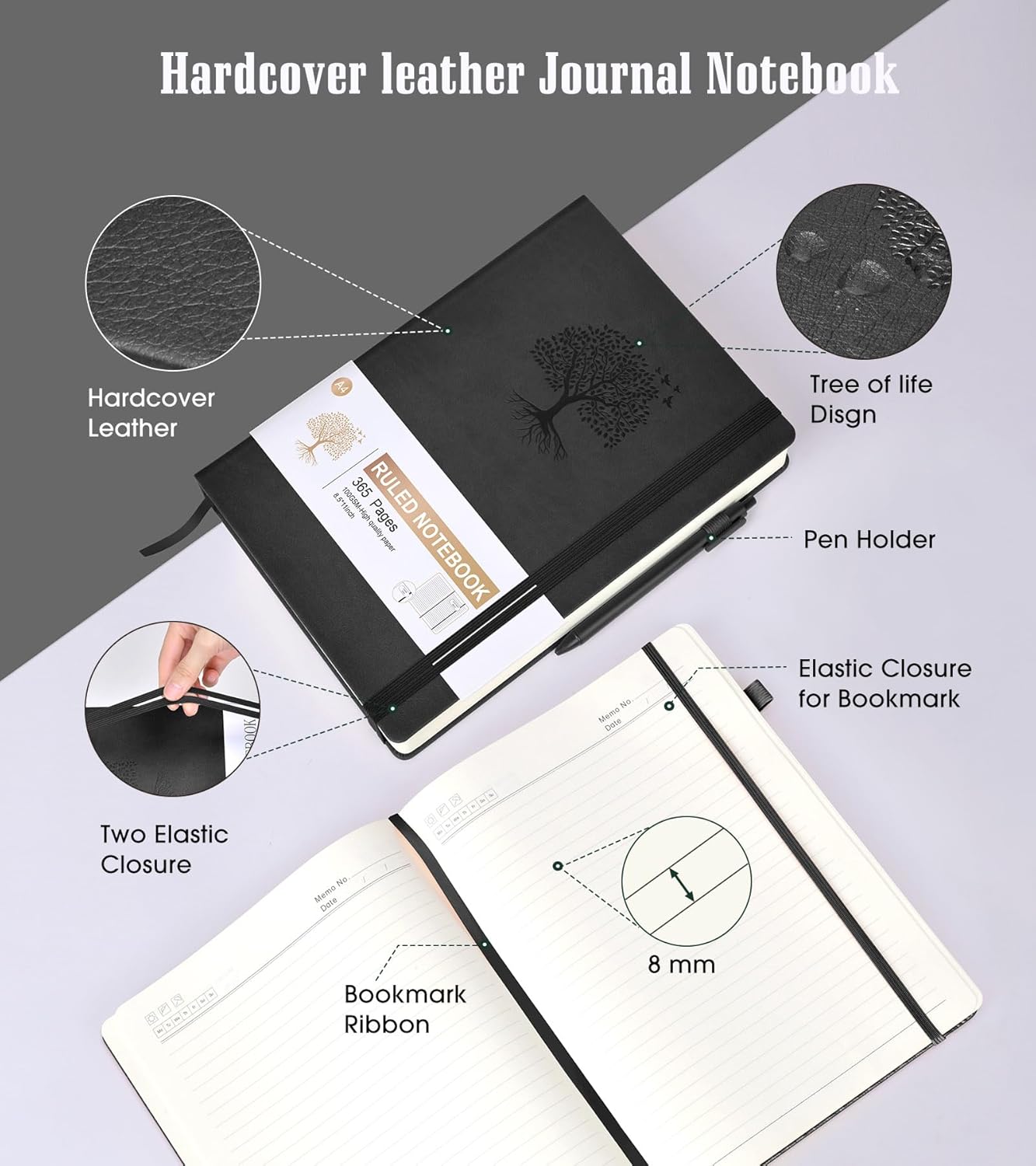 Lined Journal Notebook, 365 Pages A4 Large Journals for Writing Ruled Notebook, Hardcover Leather Journal for Women Men, Daily Notebook for Work, Note Taking, 100Gsm Thick Paper (8.5" x 11" Blcak)