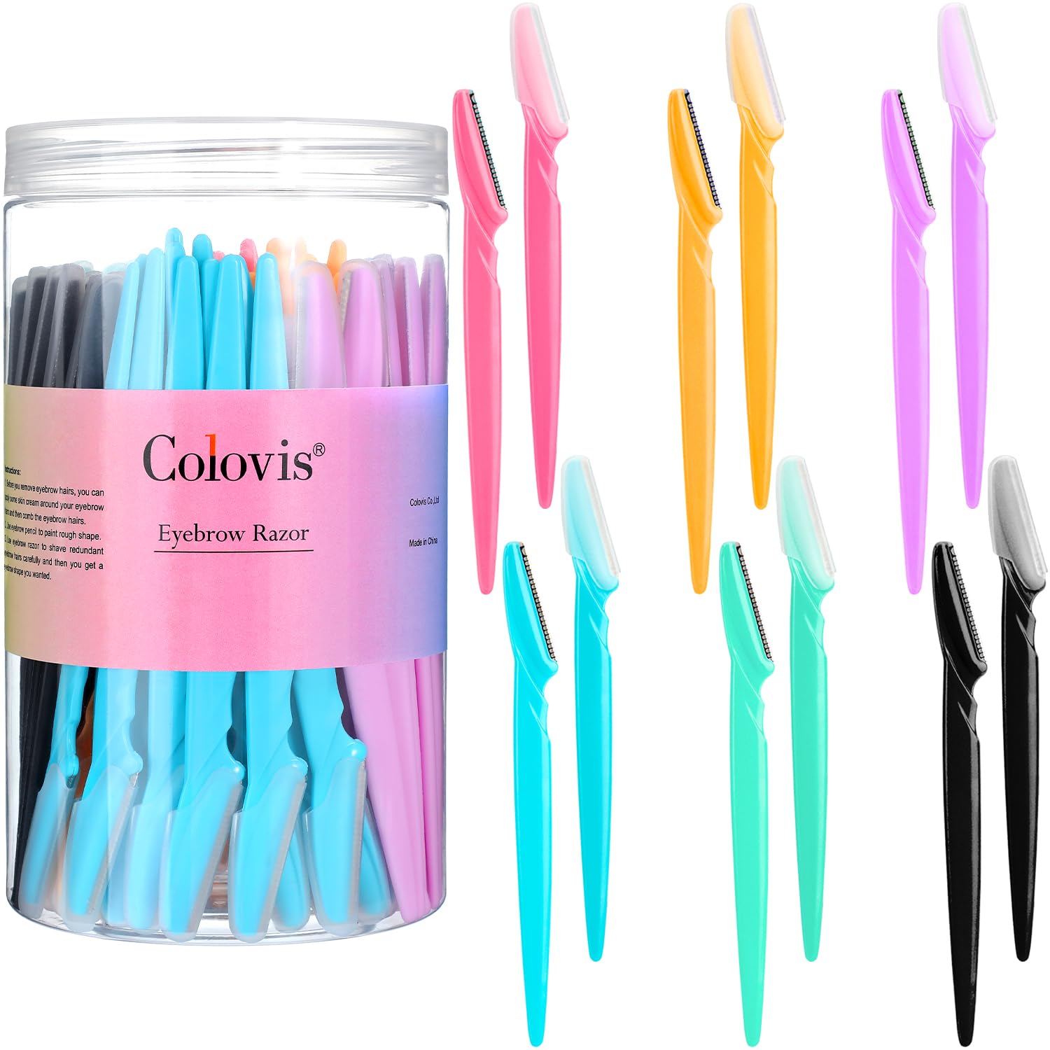- Multiple Colors: Our face razors for women come in six different colors including rose, yellow, blue, green, light purple, and black. There are 25 green and 25 light purple razors, and 15 of each of the other colors. The razors come with a case for convenient storage and organization.