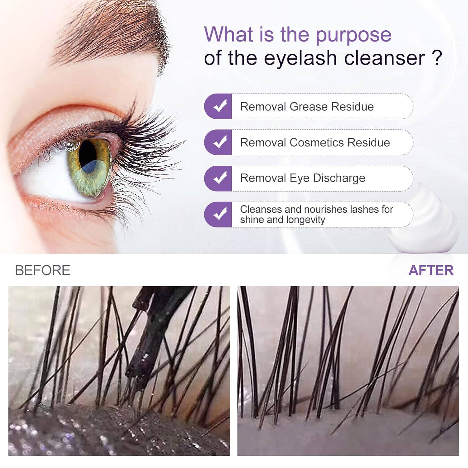 - Our eyelash shampoo for lash extensions aims to create the top brand of eyelash cleaning concentrate used in professional grade salons, excellent quality and price is our action, attentive and professional service is our guarantee, if you have any questions about the product, you can consult us, we guarantee that we will give you a reply within 24 hours!