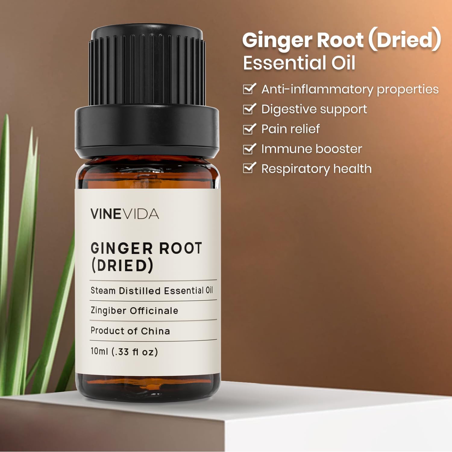 VINEVIDA Dried Ginger Root Essential Oil 10 mL - Undiluted Candle Scent DIY Scents for Candlemaking Soap Making Safe Skin,0.33 Fl Oz 1.33 Ounces