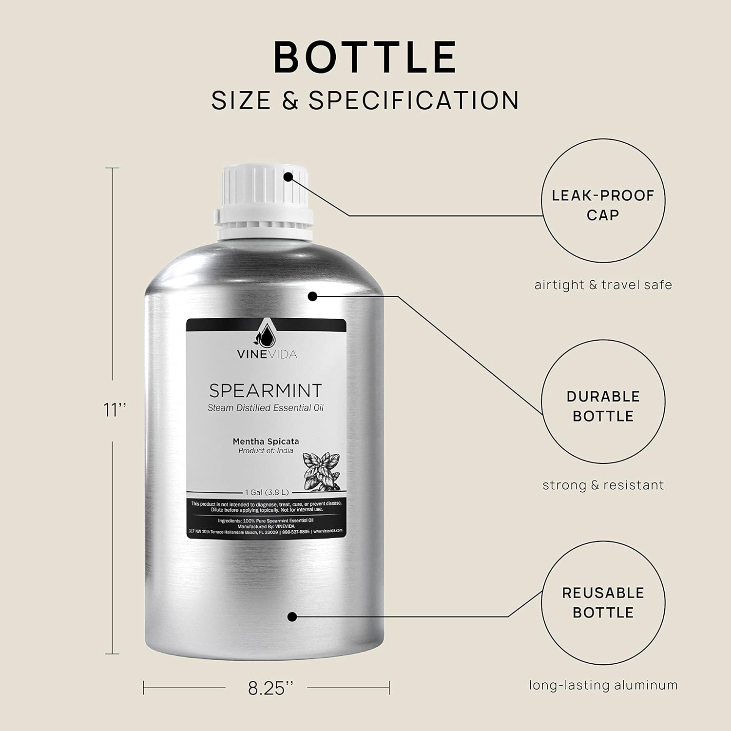 VINEVIDA Spearmint Essential Oil - Gallon Spearmint Oil Undiluted - Bulk Gallon Essential Oil for Soap Making Safe for Skin - DIY Candle Scents for Candlemaking Scents - 8 lbs Spearmint Oil