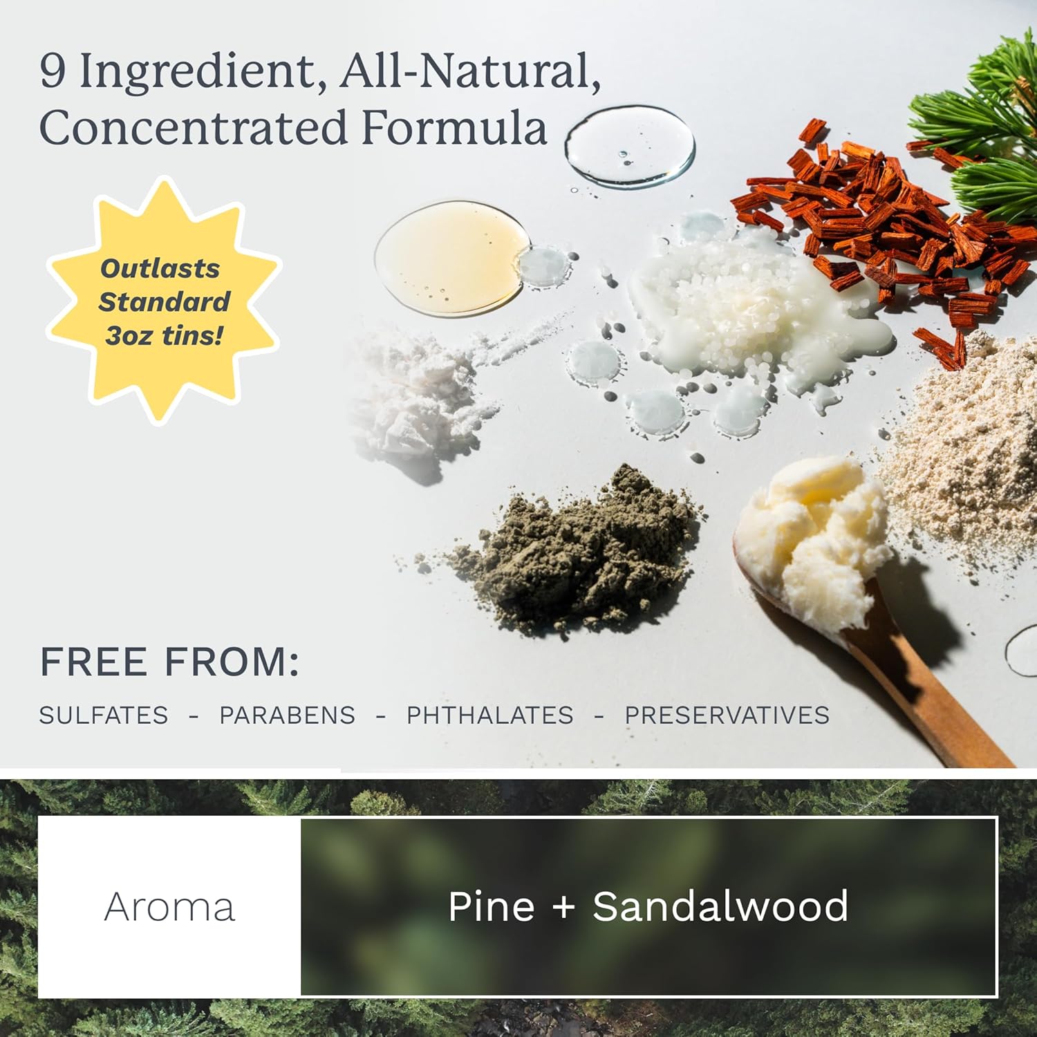- Scent : Sandalwood & Pine