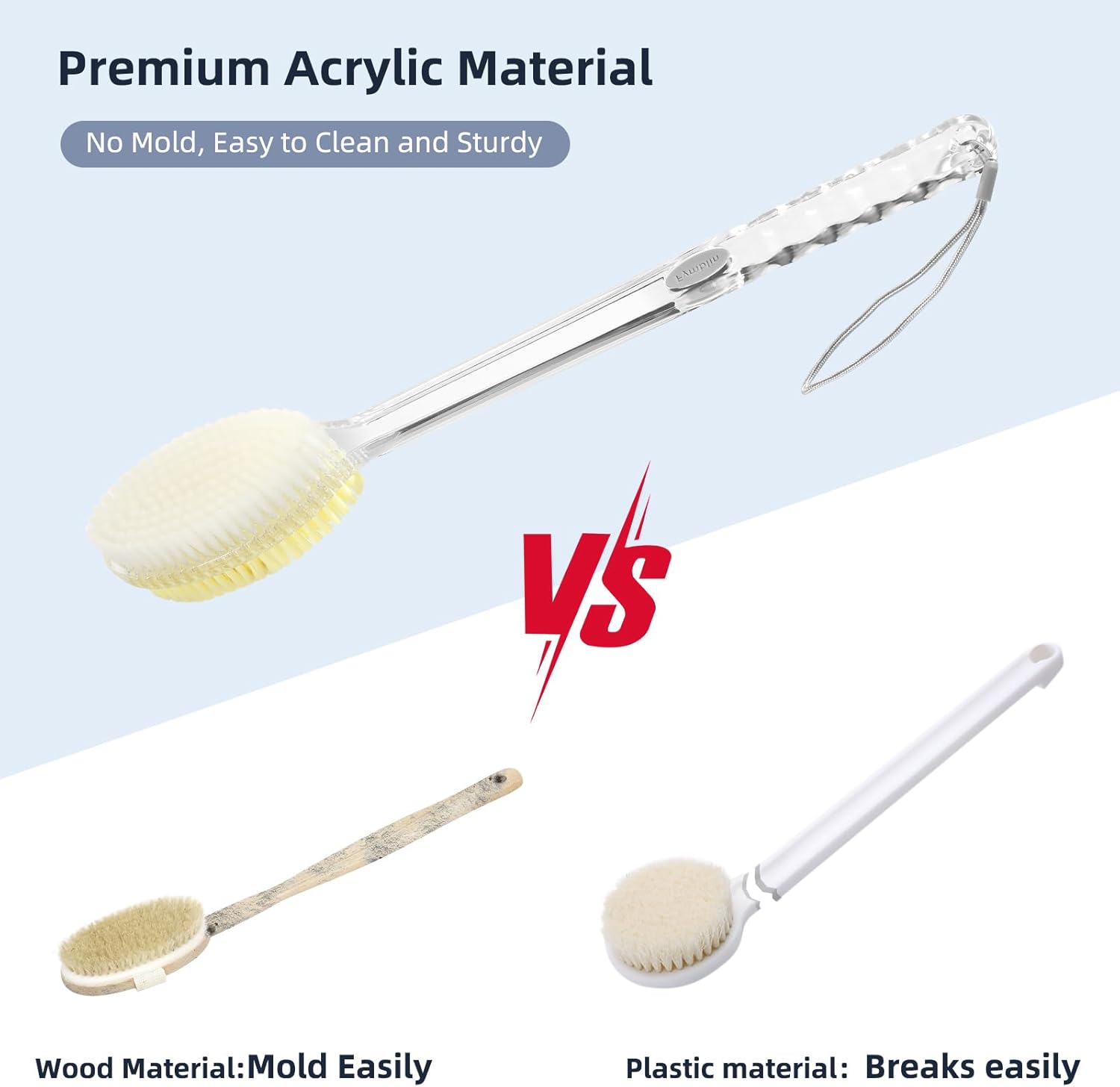 Back Scrubber Long Handle for Shower,Back Brush Dual-Sided with Stiff and Soft Bristles,Body Exfoliator for Bath or Dry Brush
