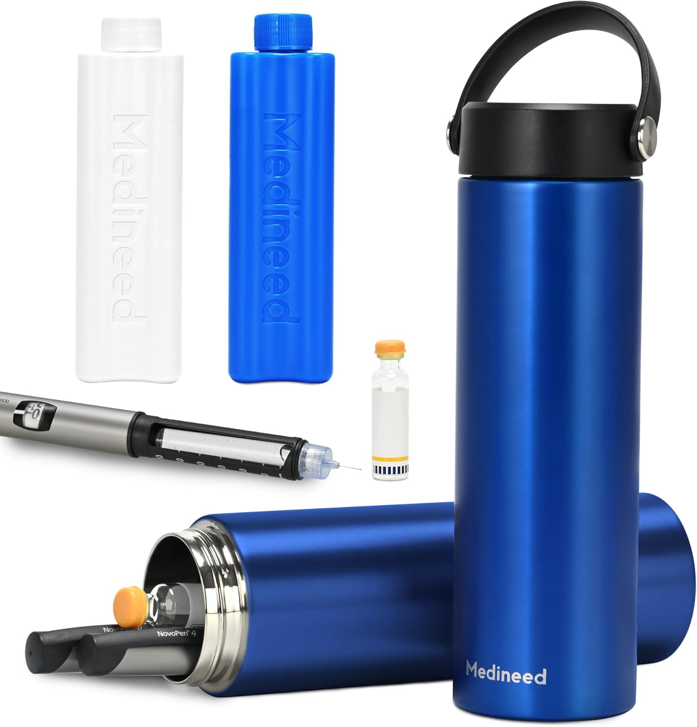 - GOOD COOLING: MEDINEED insulin cooler travel case solve the problem of refrigerating medications on the go; Biogel ice pack has great cooling capacity, even if at an ambient temperature of 105℉, ensuring that insulin would keep the temperature at 36-45℉ for 28 hours