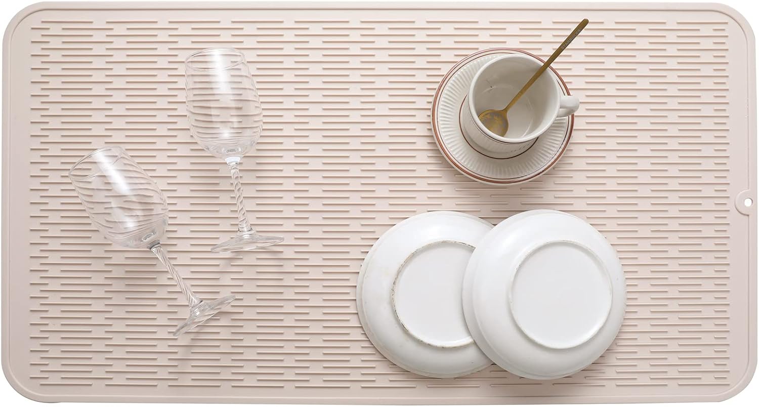 Silicone Dish Drying Mat for Multiple Usage,Easy clean,Eco-friendly,Heat-resistant Silicone Mat for Kitchen Counter or Sink,Refrigerator or Drawer Liner Tapioca 4XL 32 inches x 18 inches