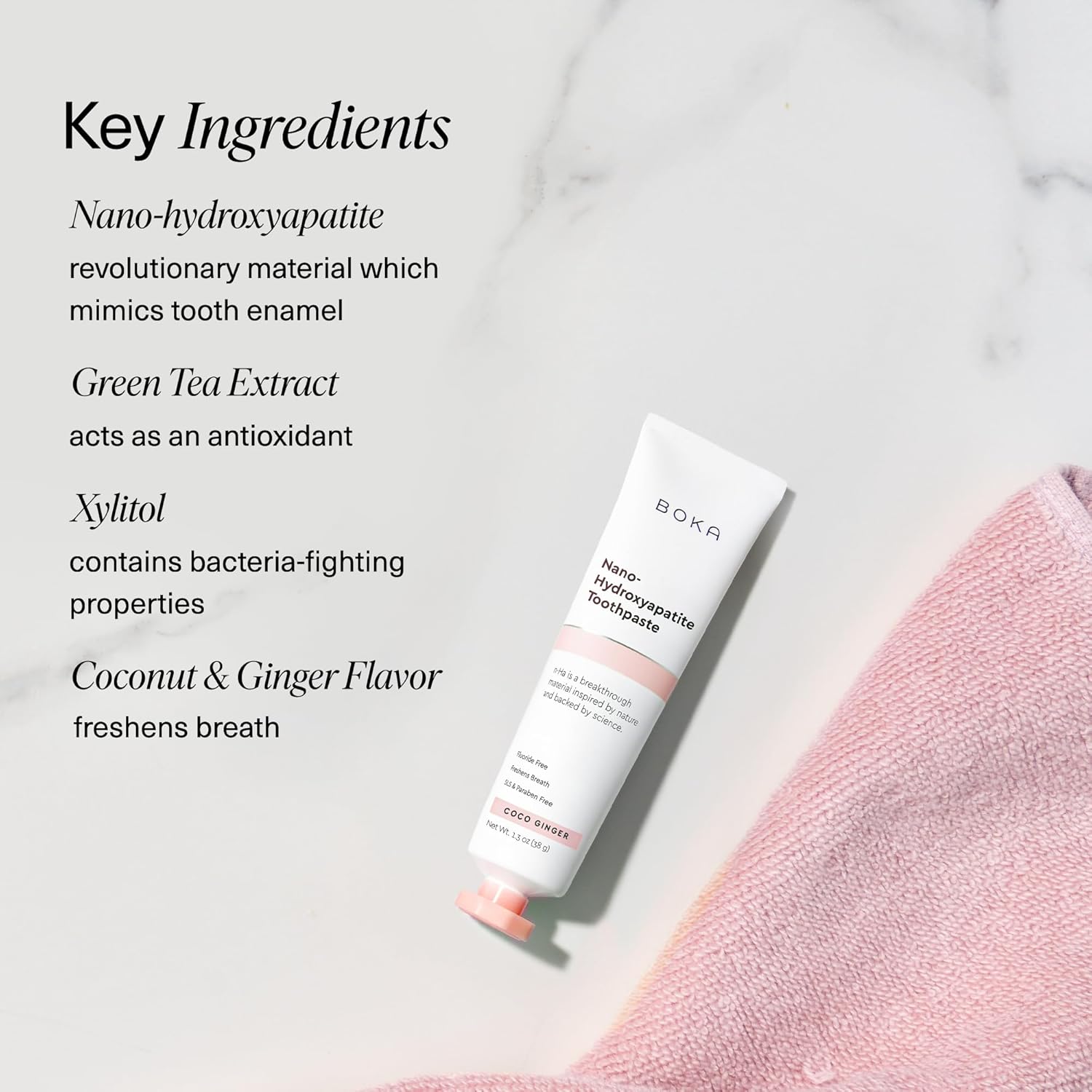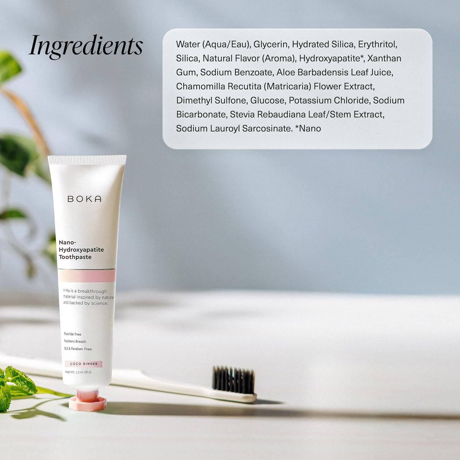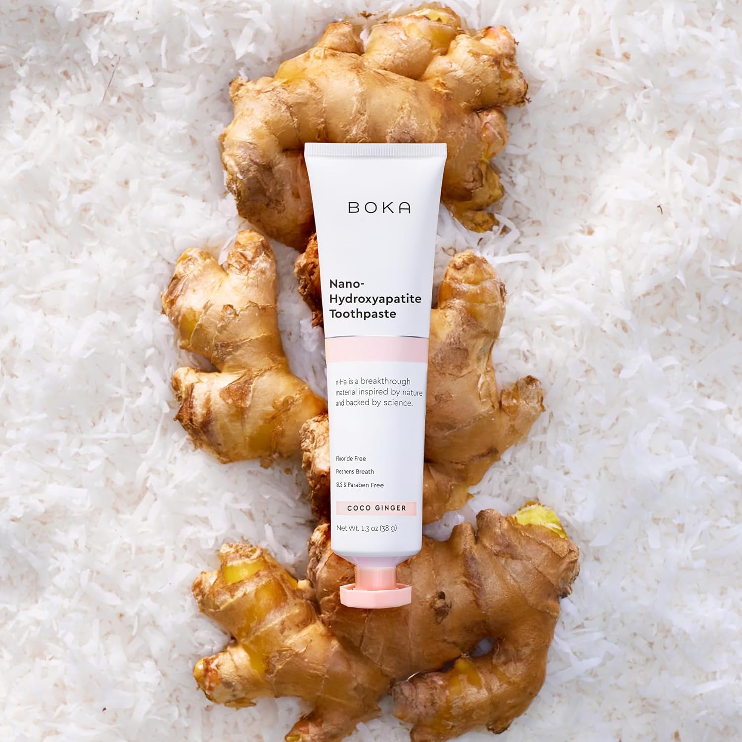 Boka Fluoride Free Toothpaste, Nano Hydroxyapatite Toothpaste, Appropriate for Sensitive Teeth - for Adult, Kids Oral Care - Coco Ginger Flavor, 1.3 Fl Oz 2Pk US Manufactured