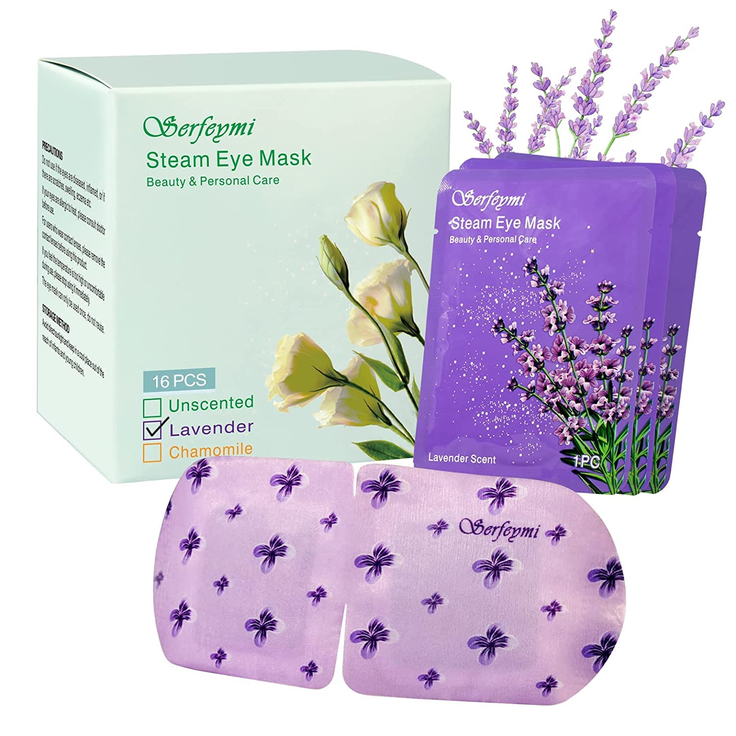 Serfeymi 16 Packs Steam Eye Masks,Disposable Self Heated Warm SPA Moist Eye Mask Compress Pad for Sleeping,Eye Fatigue Relief,Christmas Stocking Stuffers - Upgraded Lavender