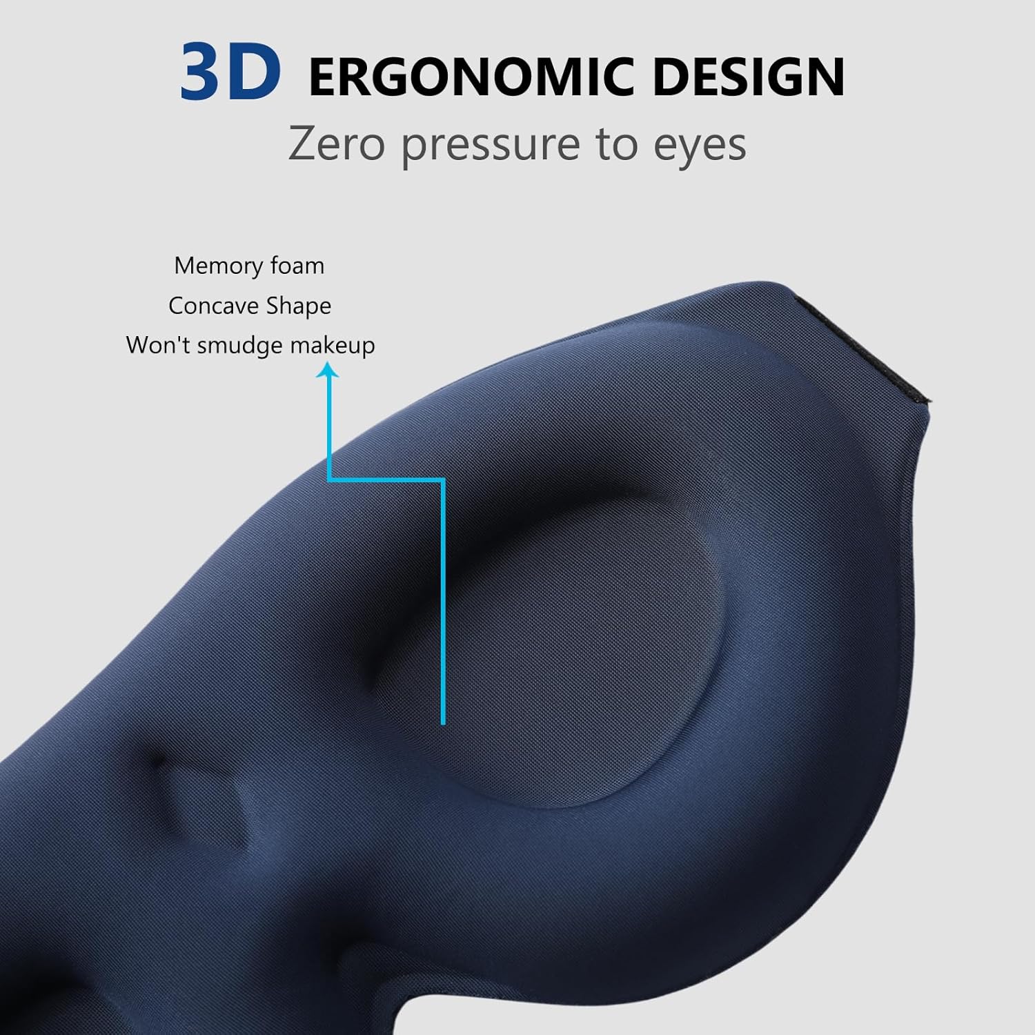 ALASKA BEAR 100% Blackout Sleep Mask Most Comfortable Contoured Eye Cups and Nose Covering for Women Men, 3D Pillowy Soft Light Blocking Eye Mask 0 Pressure on Eyelids & Eyelashes, Earplugs Set, Blue