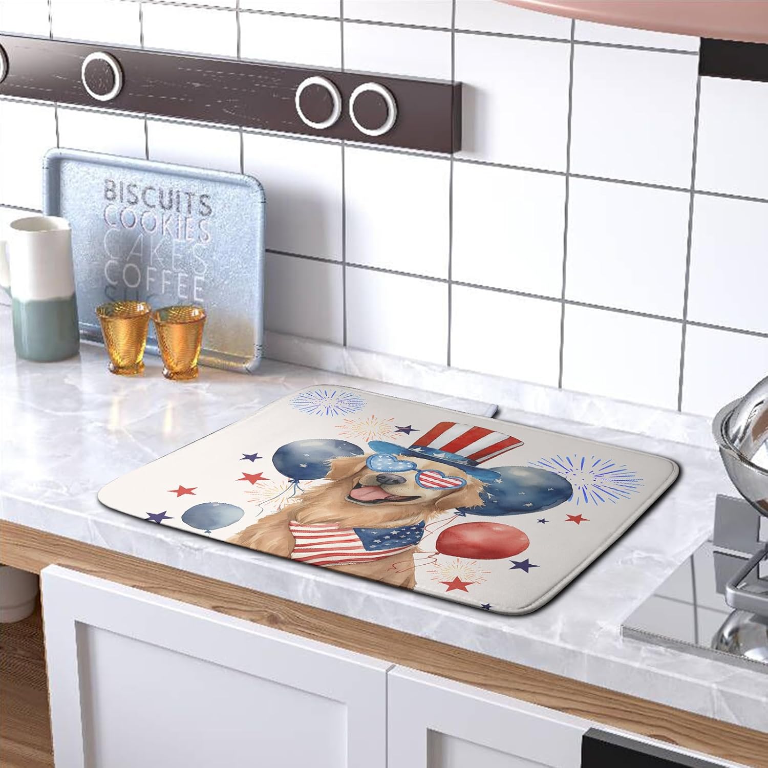 - 💖HIGH-QUALITY: Crafted from highly absorbent microfiber and a double layer of sponge, this cute dog dish drying mat boasts exceptional durability and can absorb up to four times its weight in water. Whether used indoors or outdoors, this 4th of July drying mat is sure to become your trusty assistant for all your decorative needs.