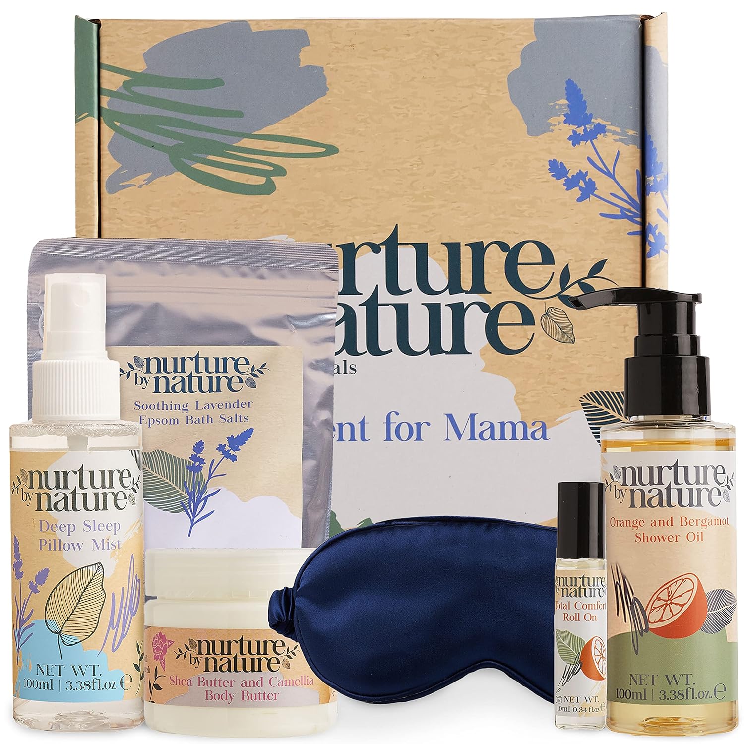 - Self Care Kit - 6 high quality, FULL SIZED premium products in one pamper hamper. Packaged in a premium Nurture by Nature branded gift box, PACKED with beautiful scents and essential oils safe for any new mom gifts. Nurturing you is in our nature.