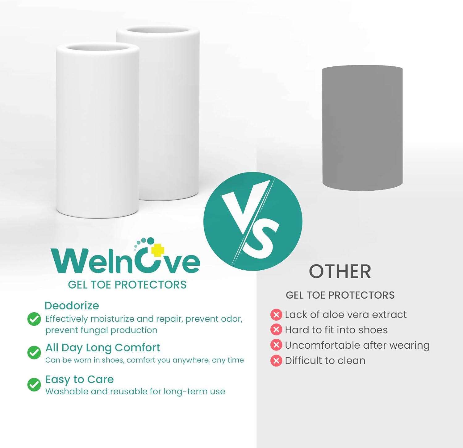 Welnove Toe Protectors – 12-Pack Silicone Toe Sleeve Toe Covers for Hammer Toes, Corns, Blisters, Toe Guards Sleeves and Toe Cushions for Pain Relief (Small)