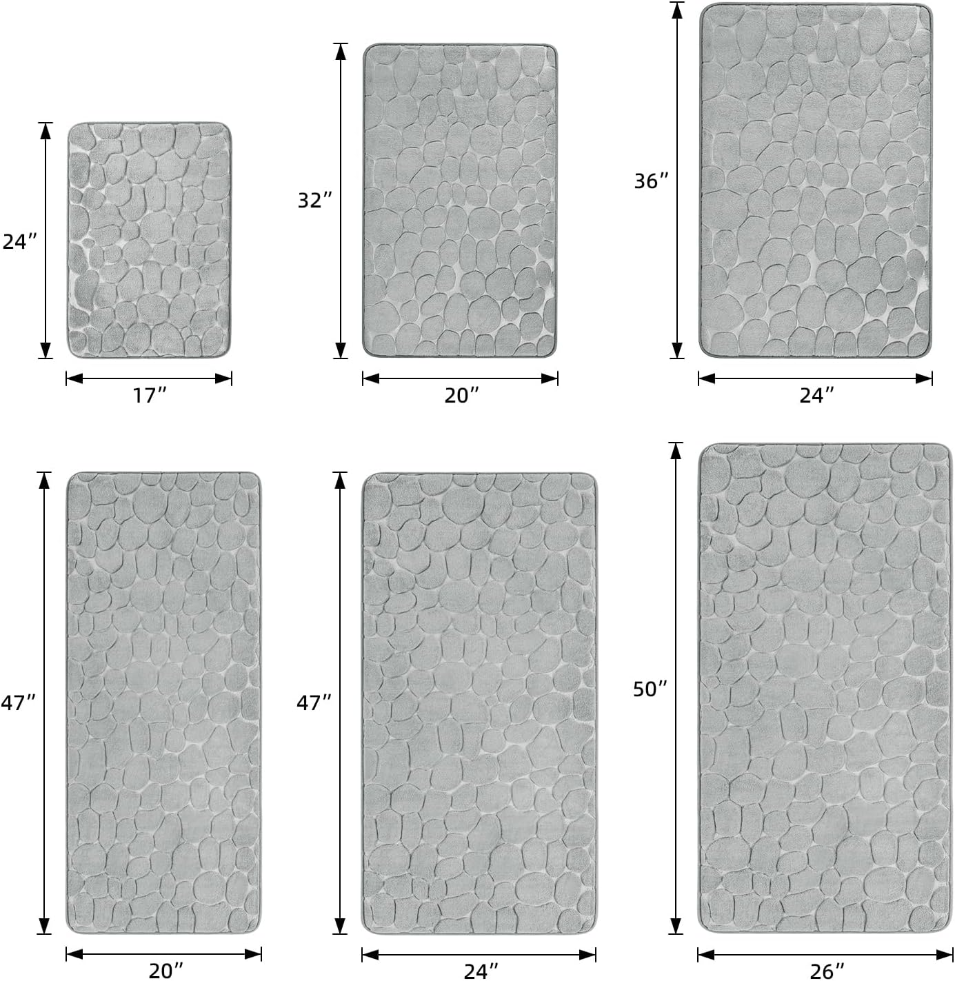 YIHOUSE Memory Foam Runner Rug, Cobblestone Bathroom Runner Rugs Super Water Absorbent Bath Mats for Bathroom Machine Washable Bath Rugs Runner for Hallway Bedroom Laundry Room(24 x 47,Light Gray)