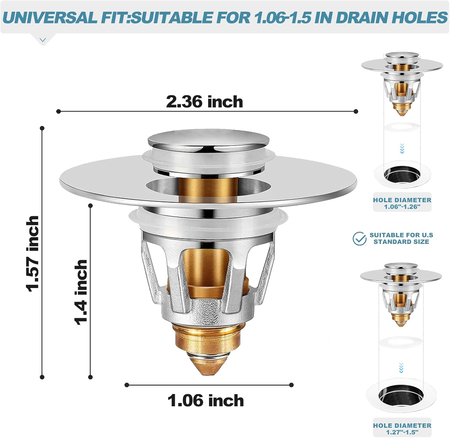 - 1.Premium Quality and Universal Fit: Our Universal Bathroom Sink Stopper is designed to fit most sinks, ensuring a perfect fit for your bathroom. Say goodbye to leaks and clogs with this high-quality sink drain stopper.