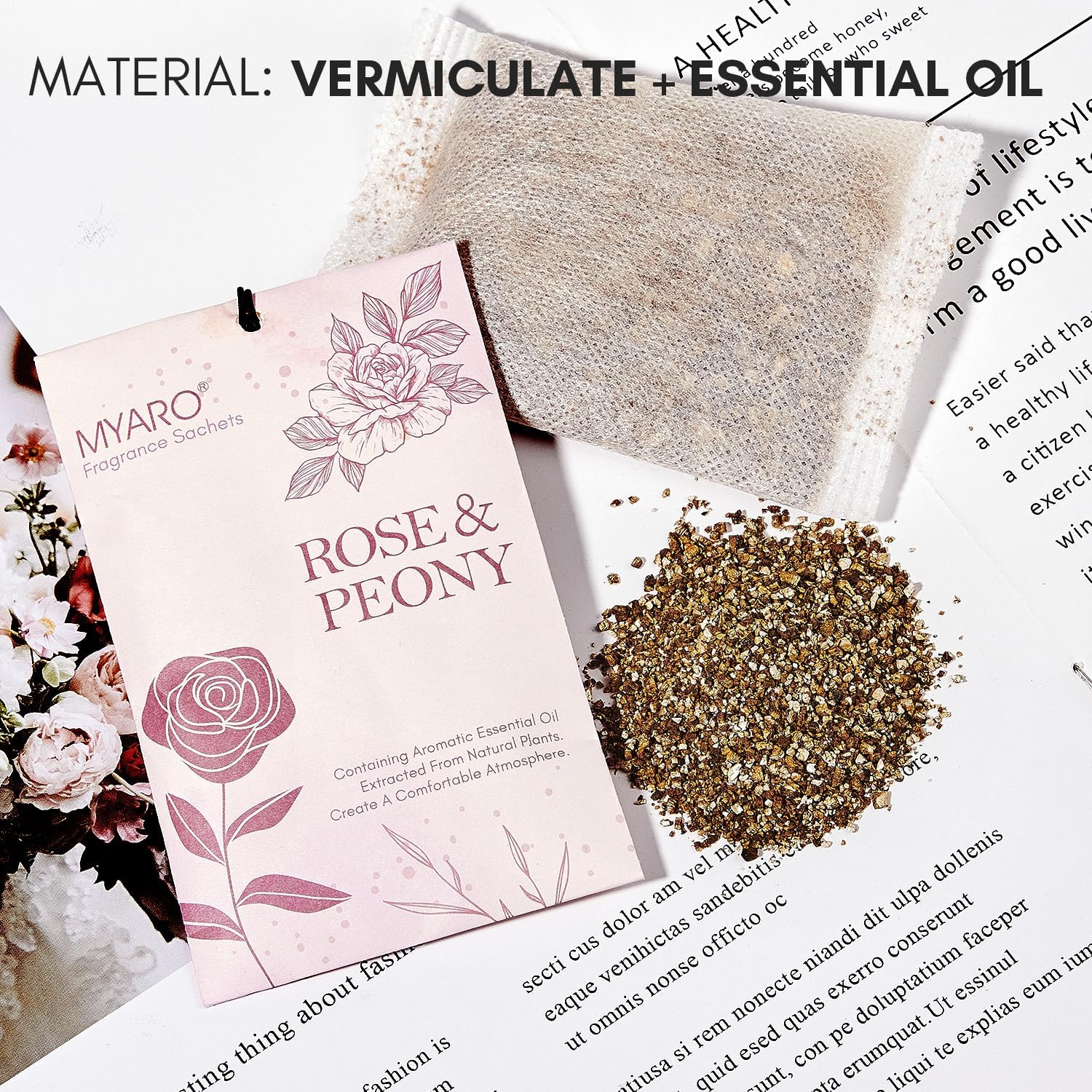 - MYARO 12 packs Scented Sachets for Drawer and Closet - Superior quality sachets made from only vermiculite of natural organic quality and add with high quality top essential oil. Can let your closet exude a fresh breath, make the room freshener dissipate well and last longer. A variety of flower essential oil fragrance is infused into the sachet, and the sachet bag releases the scent for you to enjoy!