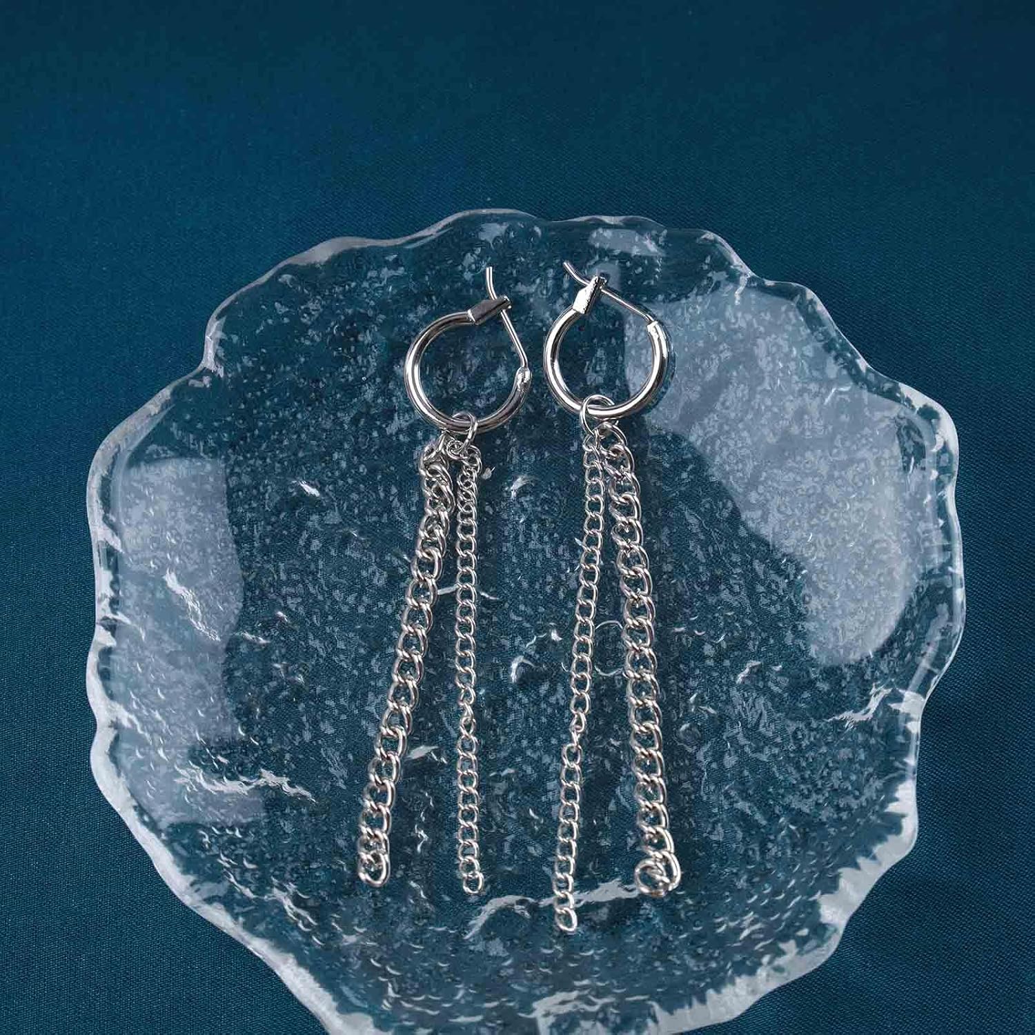 - Silver thick chain drop earrings.Item Details:Handmade Item.Size:As Shown.Color:Silver.Materials:Quality Alloy.Location:Ear.Style:Boho/Vintage.