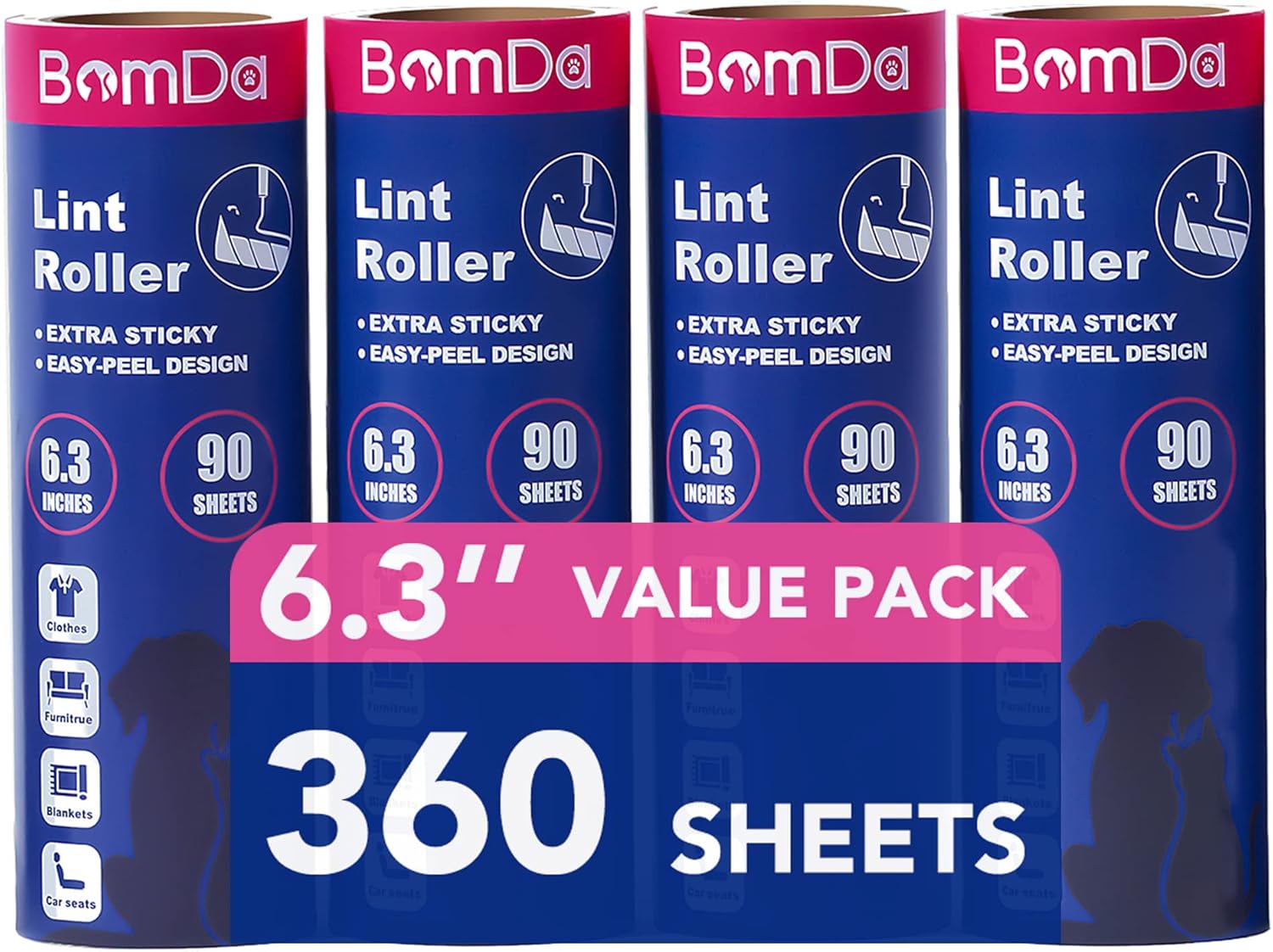 Extra Sticky Large Surface Lint Roller, 6.3'' Giant Lint Roller for Pet Hair, 360 Sheets/ 4 Refills, Long Handle Lint Remover for Clothes, Furniture, Dog & Cat Hair Remover (360 Sheets)