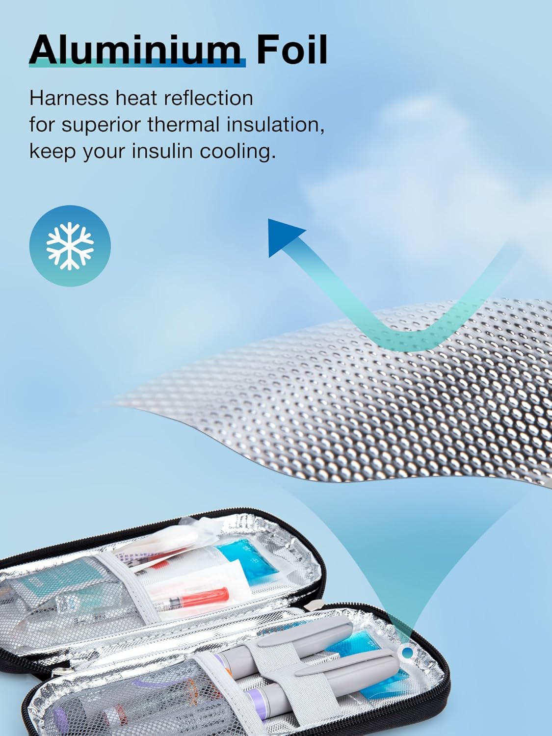 - Keep Insulin Cooling - Insulin Case Crafted from high-quality aluminum foil, this insulin cooler travel case tsa approved keeps your insulin and insulin pen at the optimal temperature for 4-6 hours. Say goodbye to concerns about outside temperature fluctuations affecting your medication's effectiveness. Perfect for diabetic insulin cooler needs.