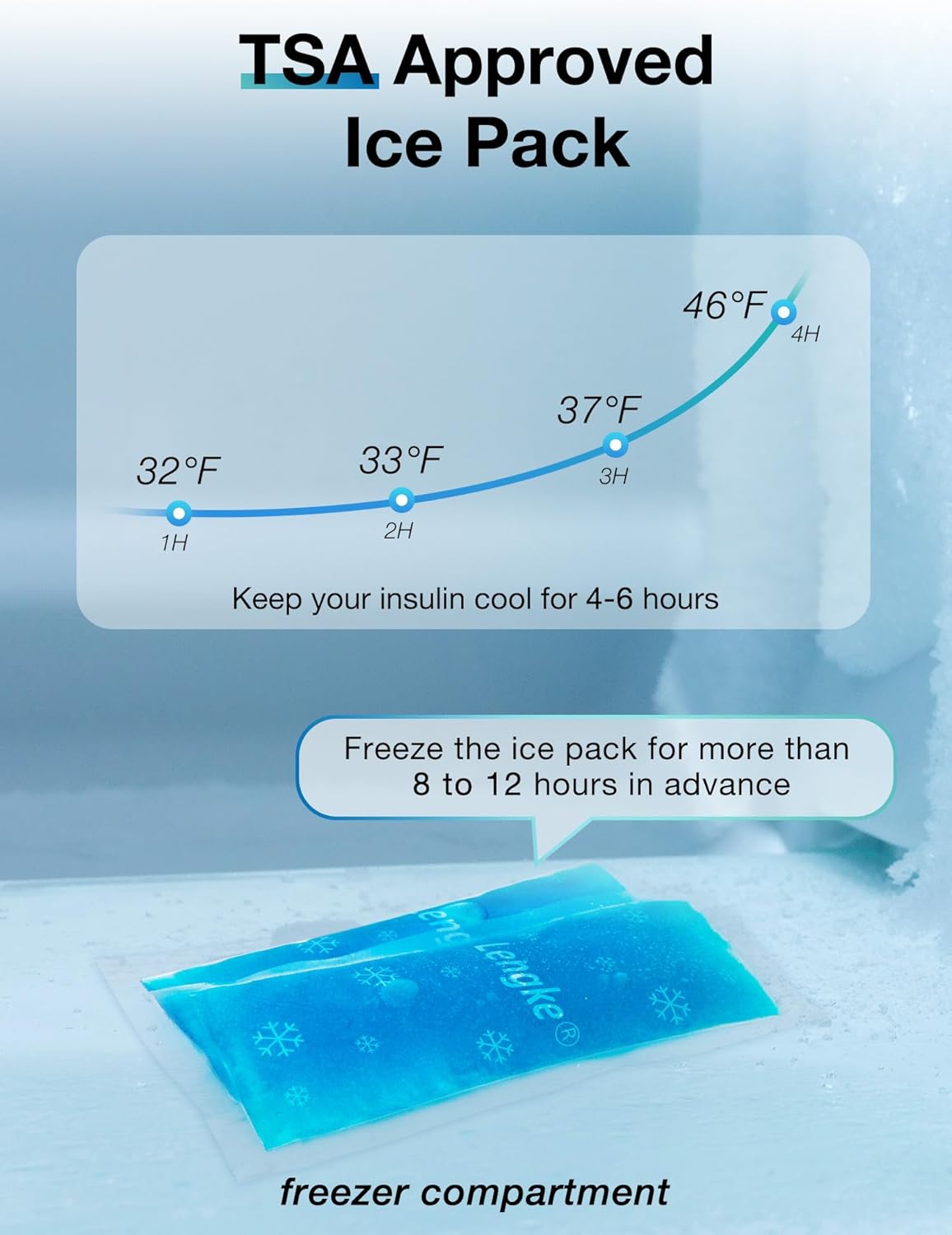 - TSA Approved Ice Packs – Keep Medication Cool On the Go - Equipped with 2 eco-friendly reusable Insulin ice packs, this TSA-approved insulin cooler travel case is perfect for travel. Simply freeze the gel ice packs for 8-12 hours before use, and keep your insulin cool on the go. Ideal for travel ice packs for medications.