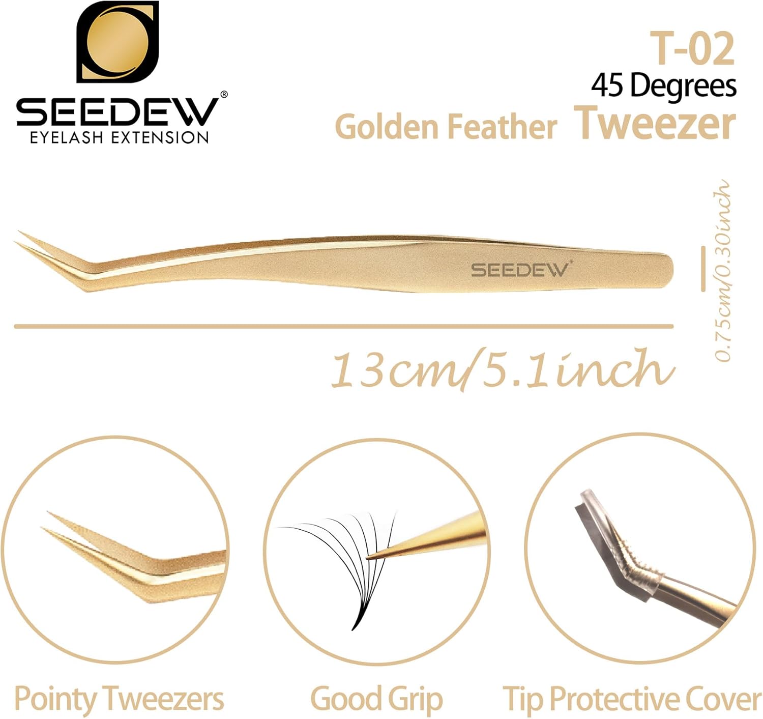 - ⭐【Premium And Classic】SEEDEW stainless steel golden tweezers have texture, smooth surface, classic and elegant style. 1 piece tweezer is equipped with a cover for the tip of the tweezer and a protective case, which is safe for storage, dustproof, dropproof, and imitation of poking.