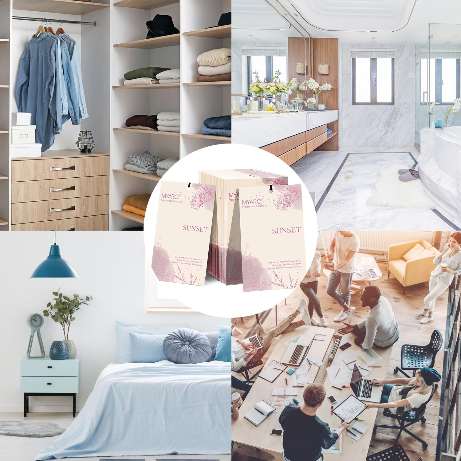 - MYARO 12 packs Scented Sachets for Drawer and Closet - Superior quality sachets made from only vermiculite of natural organic quality and add with high quality top essential oil. Can let your closet exude a fresh breath, make the room freshener dissipate well and last longer. Essential oil fragrance is infused into the sachet, and the sachet bag releases the scent for you to enjoy
