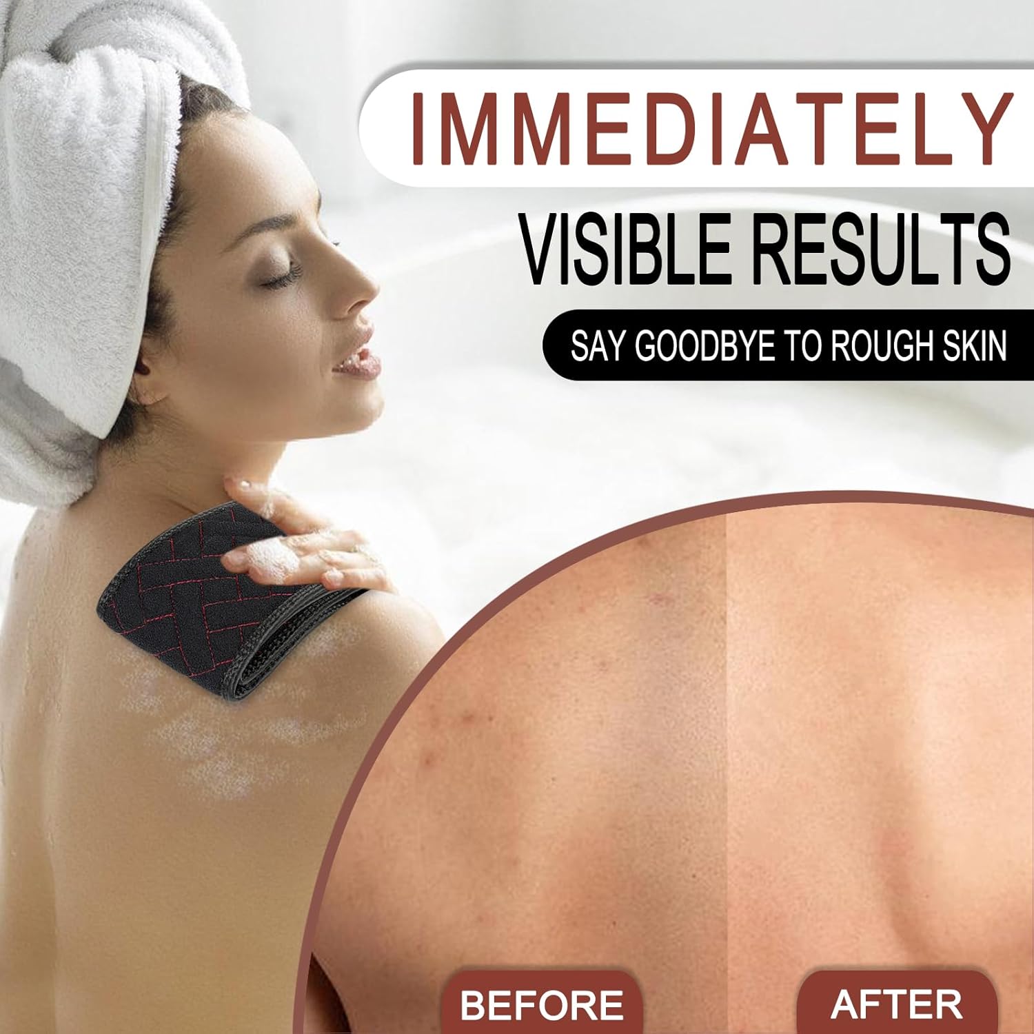 Exfoliating Back Scrubber with Upgraded Handles, 38.5 Inch Double-Sided Body Scrub Bath Exfoliator, Exfoliating Washcloth for Use in Shower, Back Washer to Deep Clean Your Skin for Men & Women (Black)