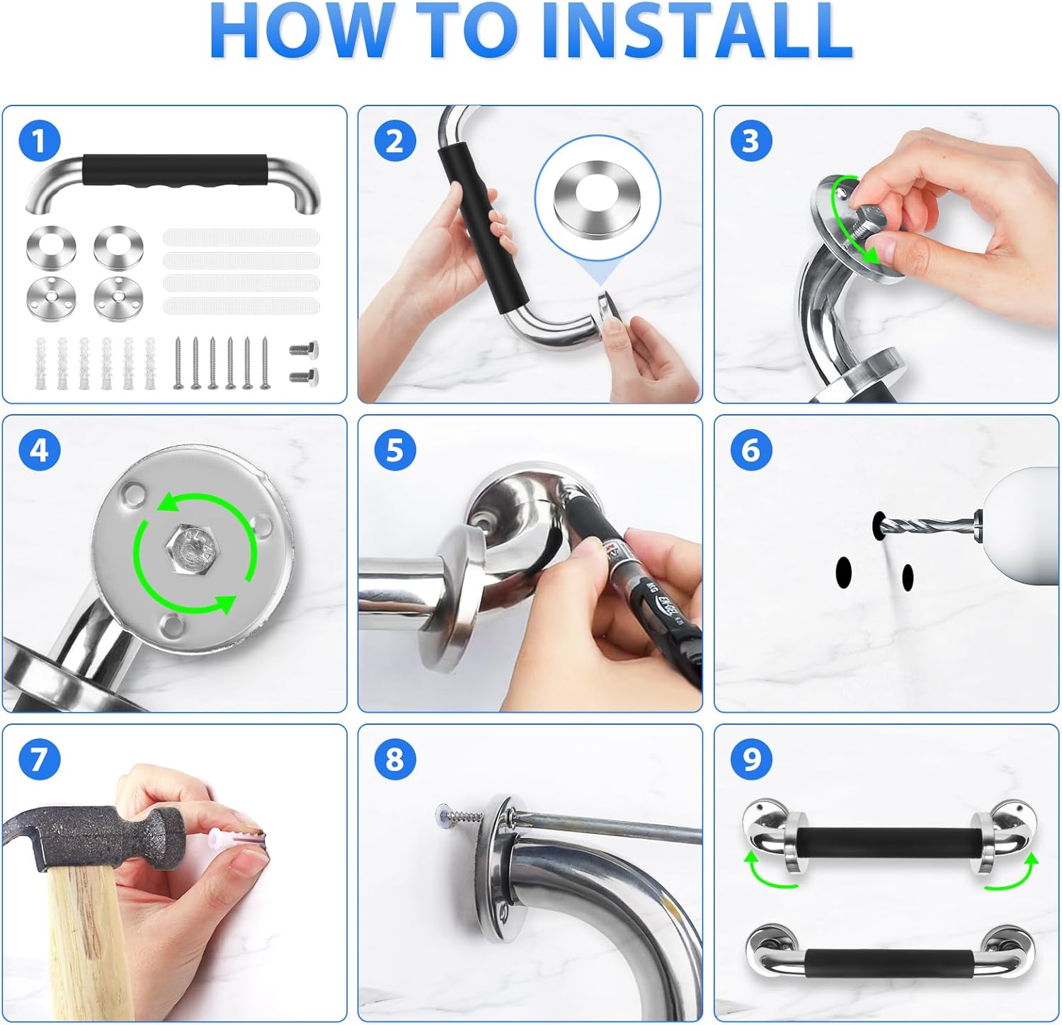 - EASY INSTALLATION: Grab bars for wall allows for easy, secure installation at any angle with our assembly instructions, concealed screw design to allows you to cover any unsightly screw holes to keep your bathtubs toilet and showers clean and beauty.
