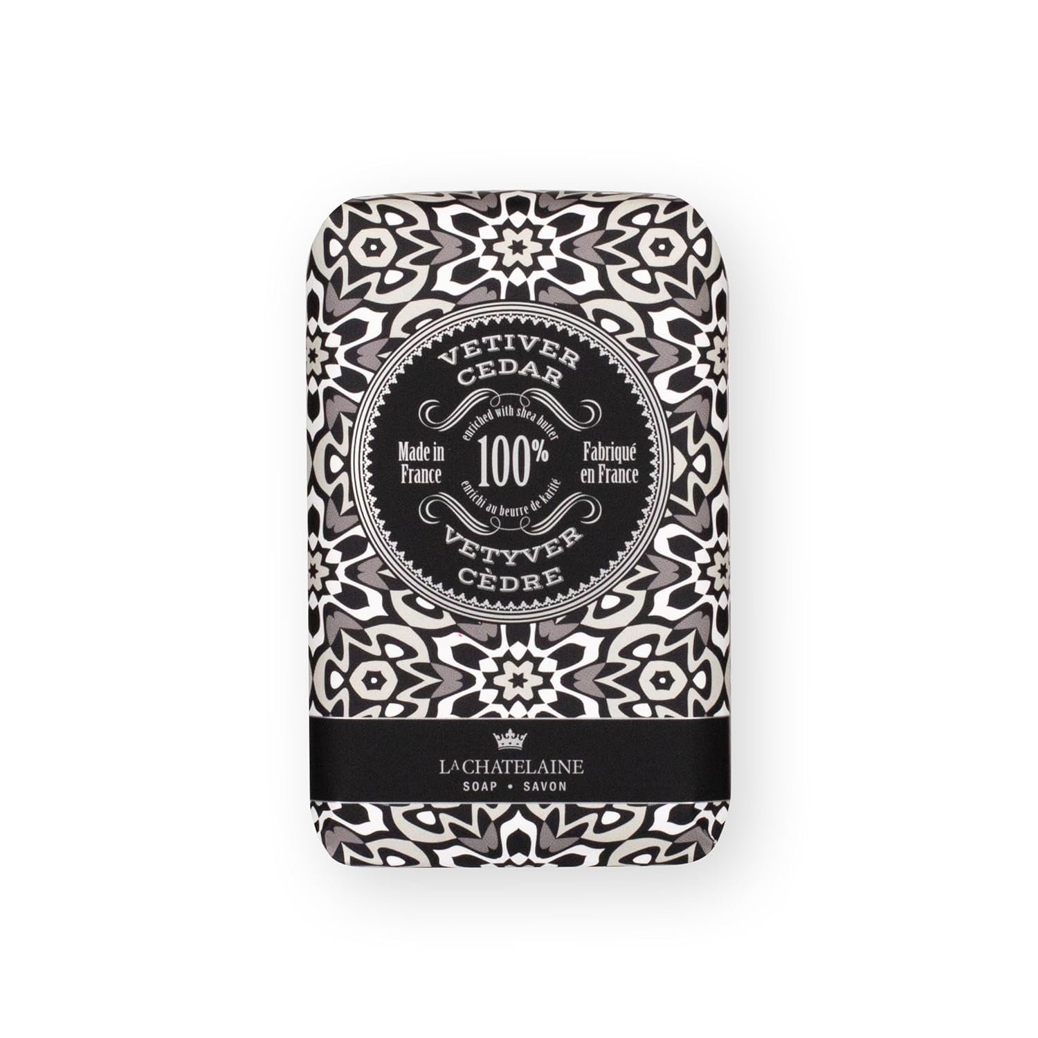 La Chatelaine Luxury Bar Soap Trio Gift Set Tin | Made in France | Natural and Organic | Shea Butter Formula | 3 x 8.8 oz / 250g - Gray Mosaic Soap Trio (Moroccan Mint, Vetiver Cedar, Bourbon Vanilla)