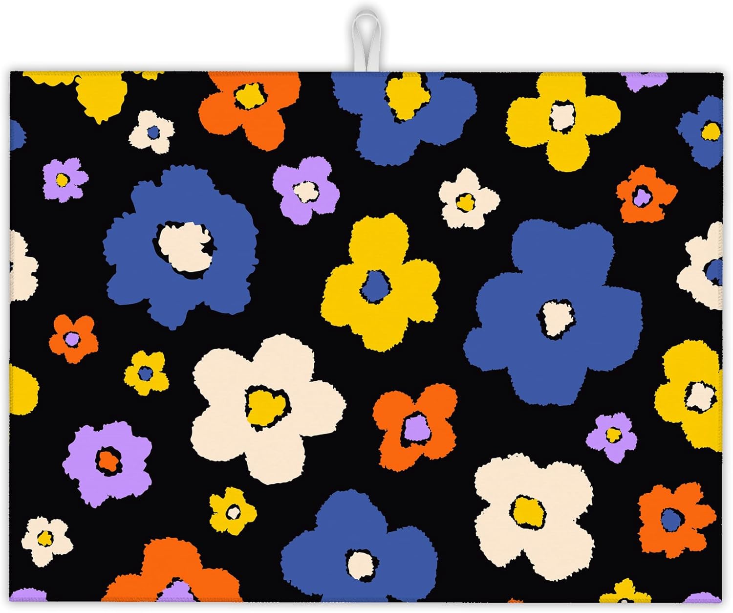 Retro Groovy Hippie Boho Dish Drying Rack Mat for Kitchen Counter,Daisy Flower Dish Drying Pad Absorbent Reversible Microfiber Protector for Coffee Bar Sink Countertops 18x24 Inch