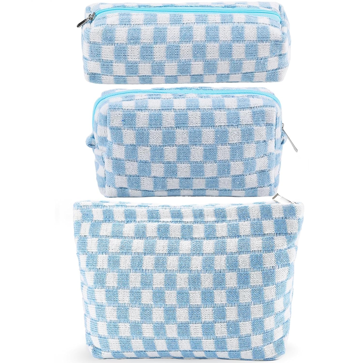 - LARGE CAPACITY AND PREMIUM MATERIAL: The cute makeup bag measure 10.6×7 inches, 7×4 inches and 7.7×2.5 easy to carry. The checkered makeup bag is made of soft knitted fabric, easy to clean. The smaller ones can be used as pencil case or pencil pouch. This makeup travel bag can also hold small items such as makeup, skincare products, lipstick, eye shadow, eyebrow brush, etc. Makeup storage bag for women toiletries