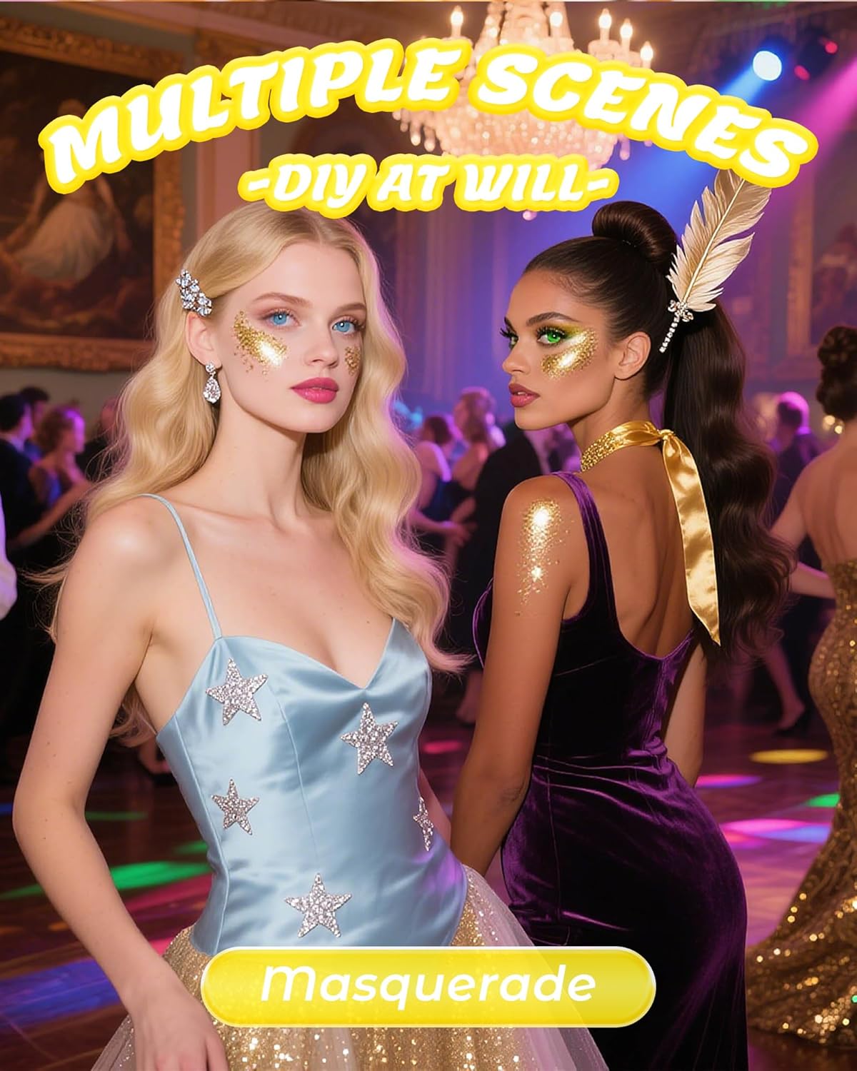 - VERSATILE ALL-OVER GLAM: Our yellow glitter paint from face body and decolletage to hair and nails, this glitter works everywhere. Wear it as eyeshadow, highlight your collarbones, or add sparkle to your hairstyle—it’s your go-to accessory for creating show-stopping looks from head to toe