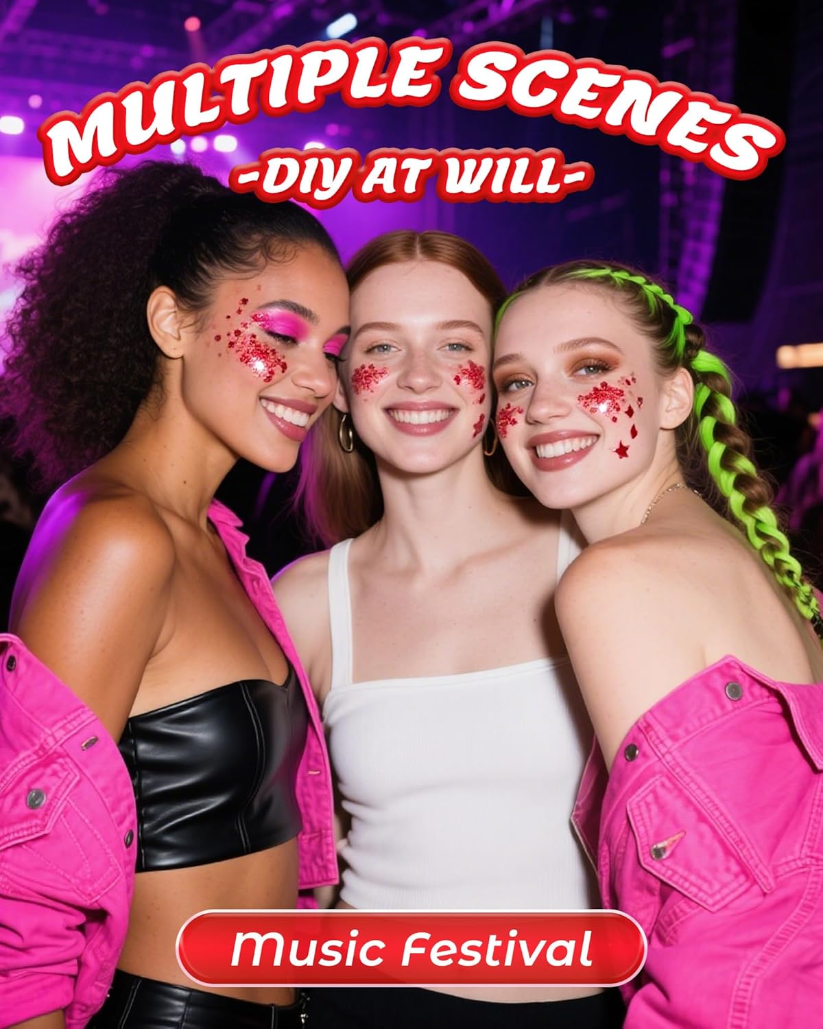 - VERSATILE ALL-OVER GLAM: Our Red glitter paint from face body and decolletage to hair and nails, this glitter works everywhere. Wear it as eyeshadow, highlight your collarbones, or add sparkle to your hairstyle—it’s your go-to accessory for creating show-stopping looks from head to toe