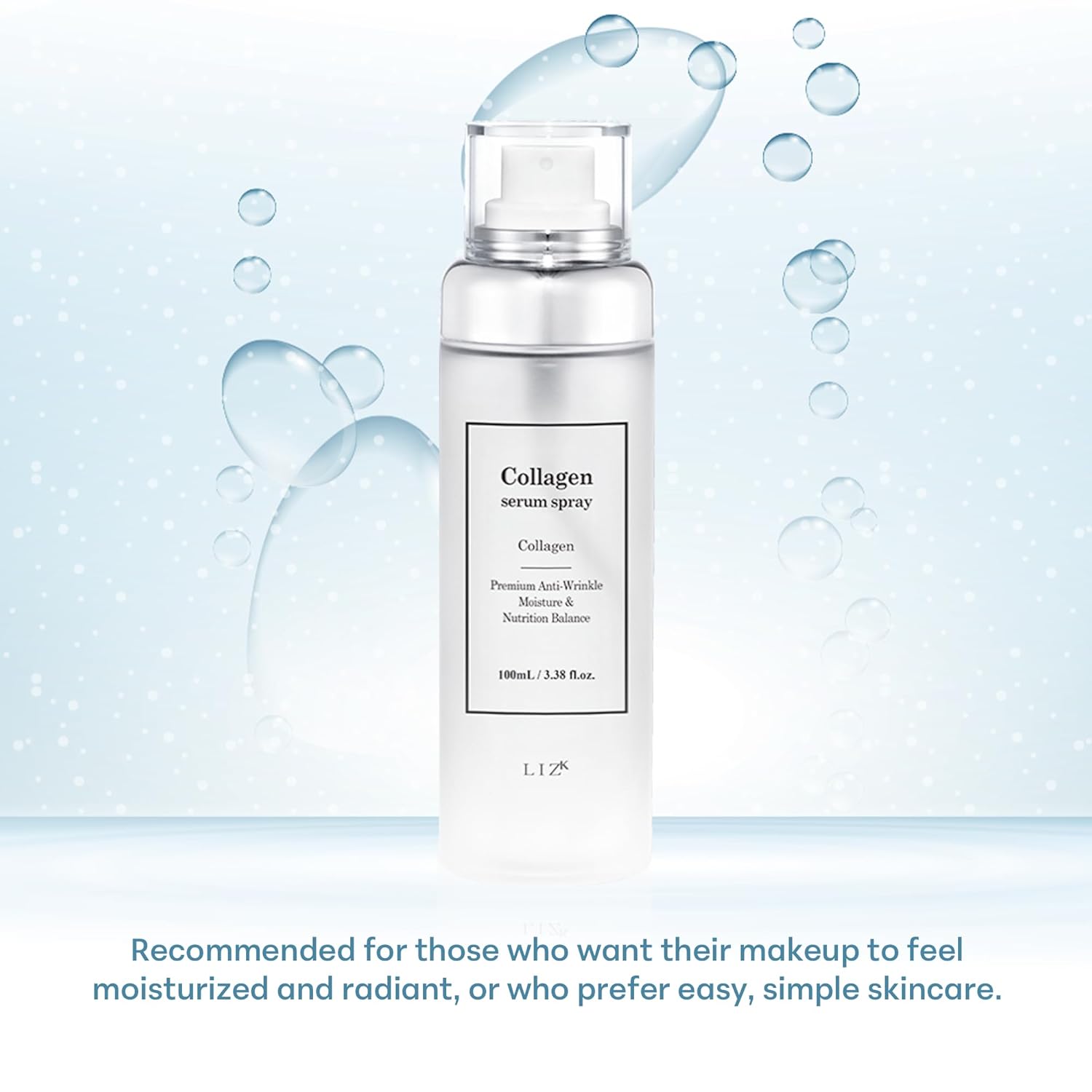 LIZK Collagen Serum Spray for Face 100ml (3.38 fl.oz) Glass Skin,easy to use, sparying at first step in skincare,body care, moisture mist, korea cosmetics