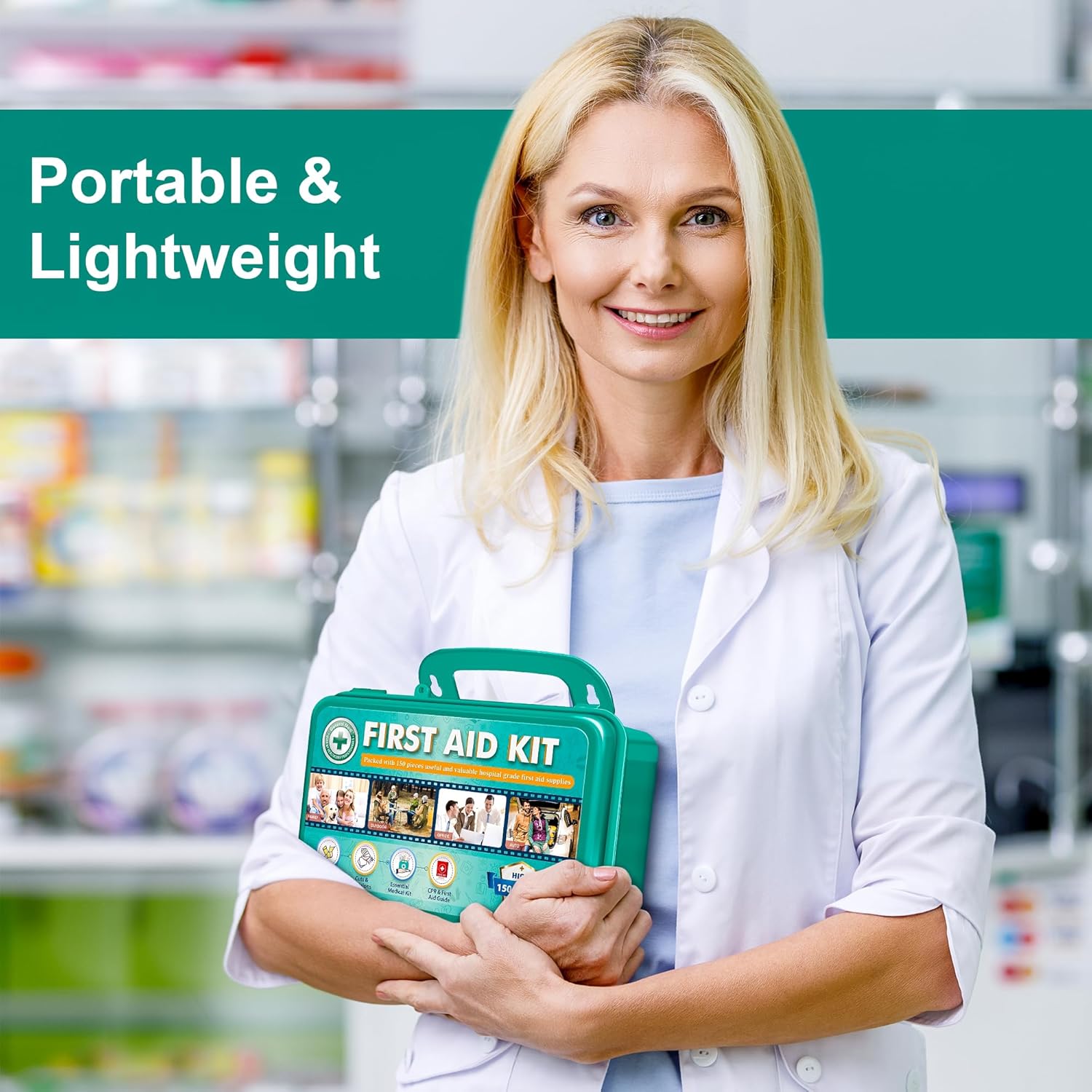 General Medi 150 Pieces Hardcase First Aid Kit - First Aid Box Contains Premium Medical Supplies for Travel, Home, Office, Vehicle, Camping, Workplace & Outdoor