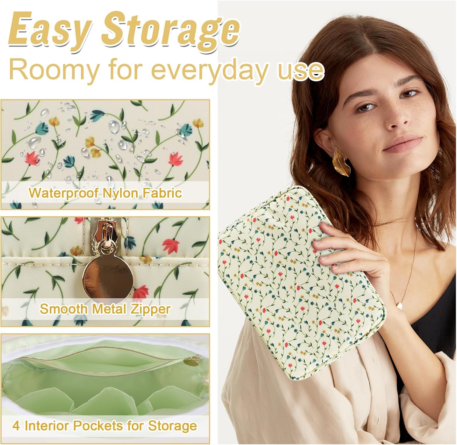 - ❤【Multiple Sizes & Colors】Large, Small, Mini, or Slim, we have it all! Cosmetic bags are available in many colors: Blue-Daisy, Green-Daisy, White-Flower, Pink-Flower and other colors for you to choose. Nylon makeup bag for purse can be used for travel, outdoors and organization, it can be used as a purse bag, travel pouch, clutch, makeup organizer and more.