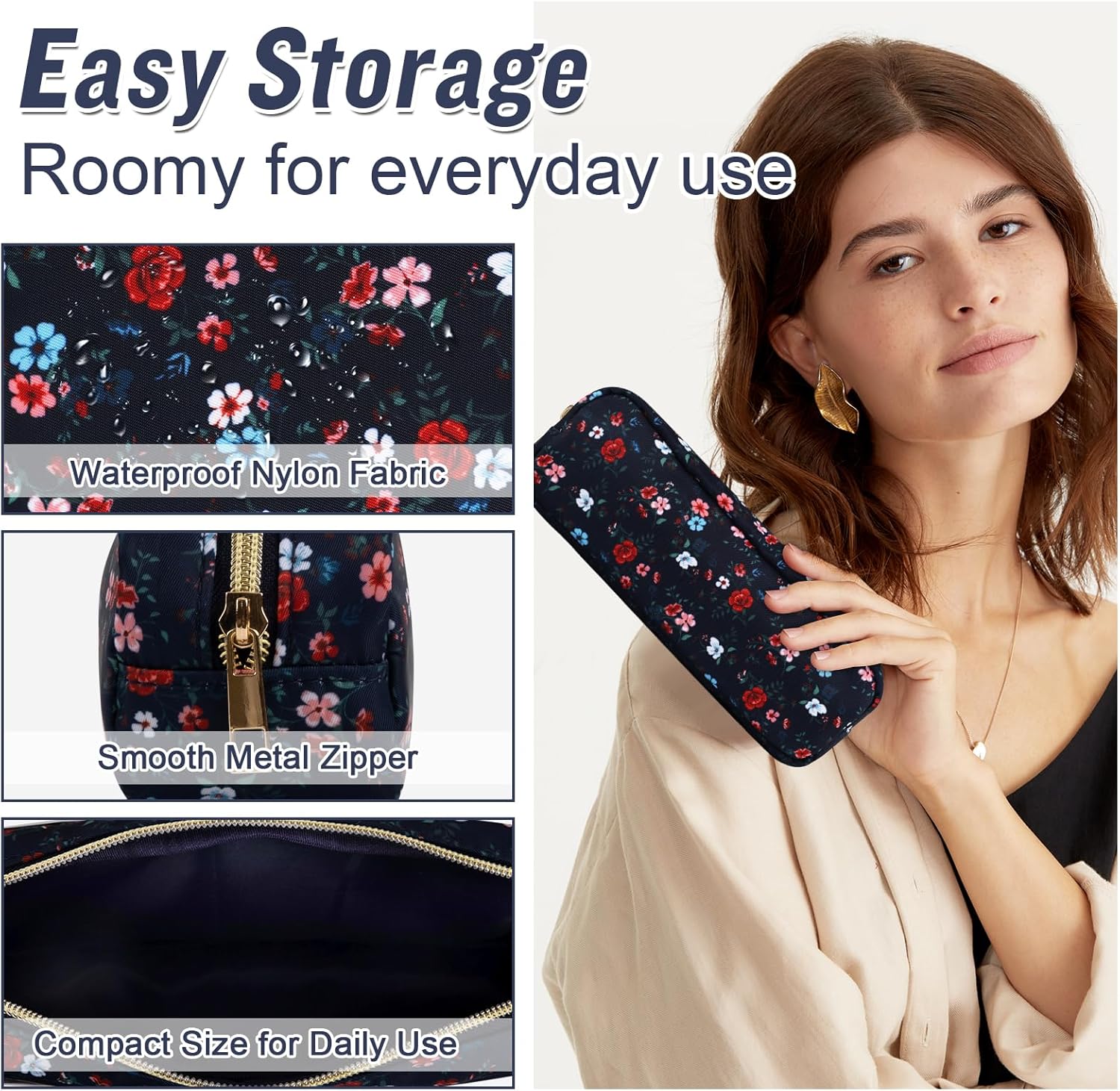 - ❤【Premium Materials】Slim Small floral makeup bag is made of high-quality nylon waterproof material and durable gold zipper, which does not fade, has no peculiar smell, and is durable. Stylish appearance, easy to wipe clean, dustproof and waterproof. The makeup pouch interior is covered with thick sponge to protect your belongings at all times.