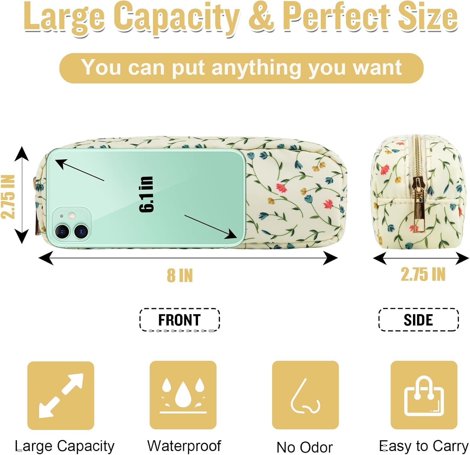 - ❤【Premium Materials】Slim Small floral makeup bag is made of high-quality nylon waterproof material and durable gold zipper, which does not fade, has no peculiar smell, and is durable. Stylish appearance, easy to wipe clean, dustproof and waterproof. The makeup pouch interior is covered with thick sponge to protect your belongings at all times.